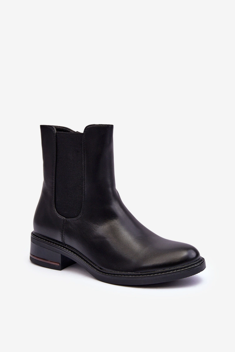 Niskie Skórzane Botki Sztyblety Damskie Czarne Tyber