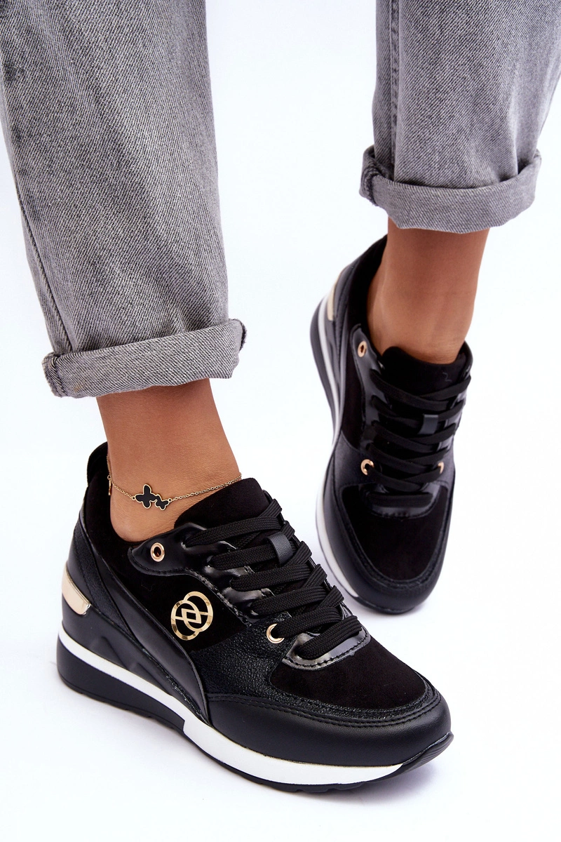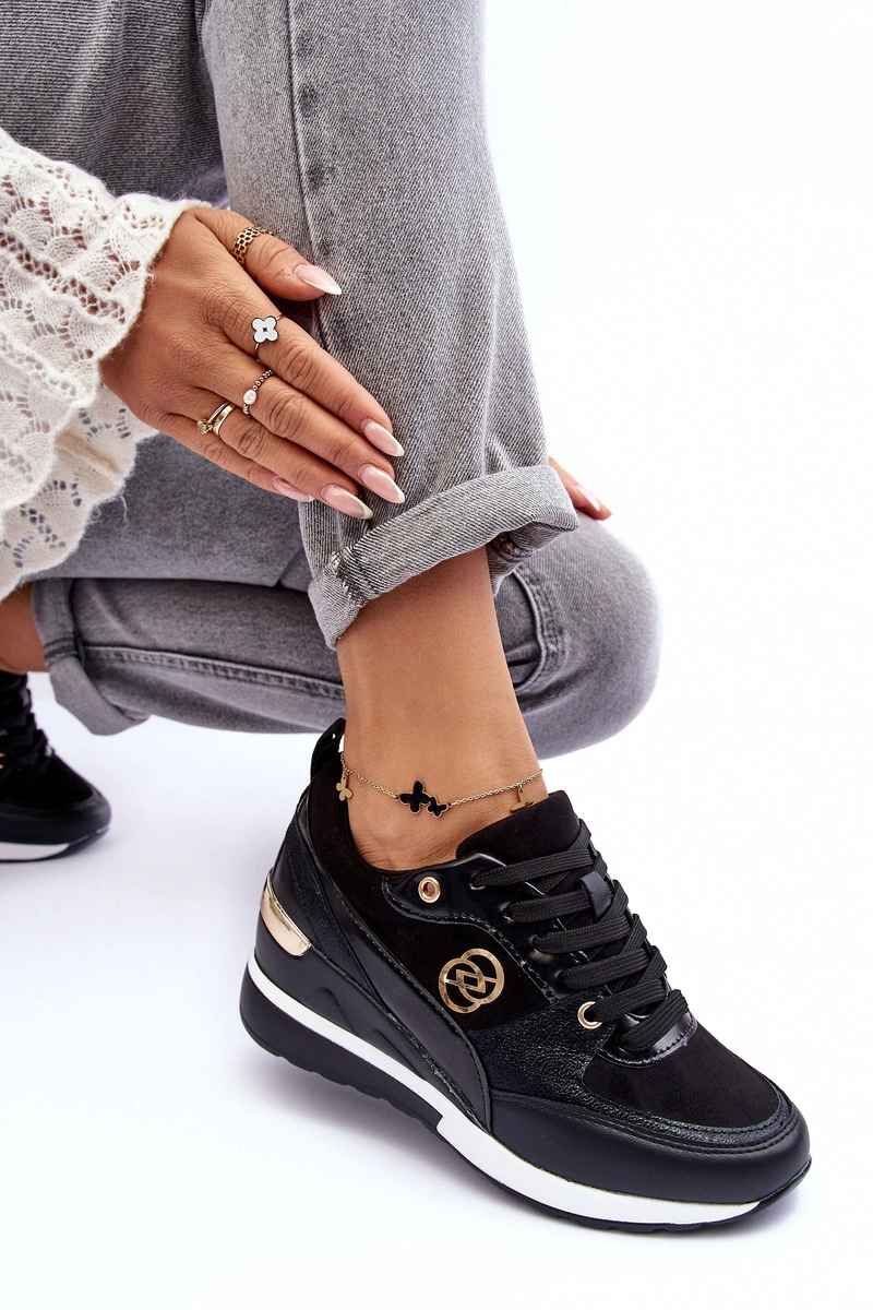 Damskie Sznurowane Buty Sportowe Na Koturnie Czarne Genova