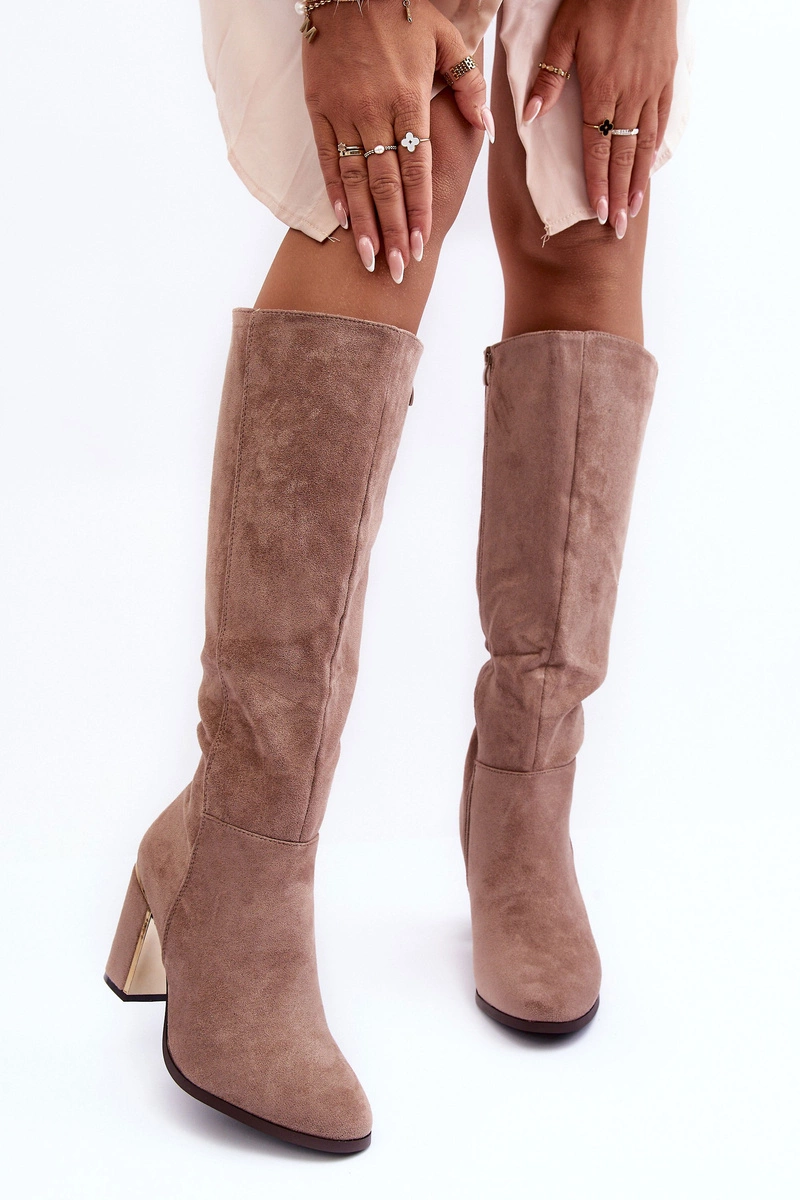 Kozaki Przed Kolano Na Słupku Zamszowe Beżowe Kilrenita
