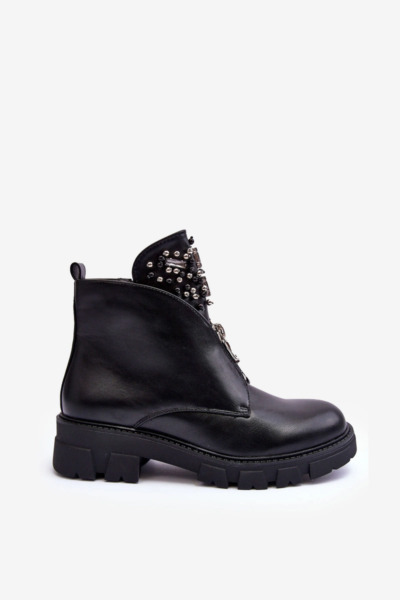 Niskie Zdobione Skórzane Botki Z Suwakiem Czarne Escika