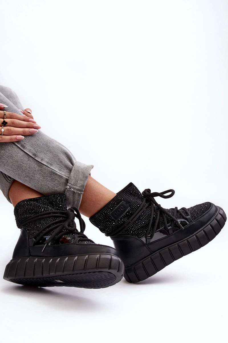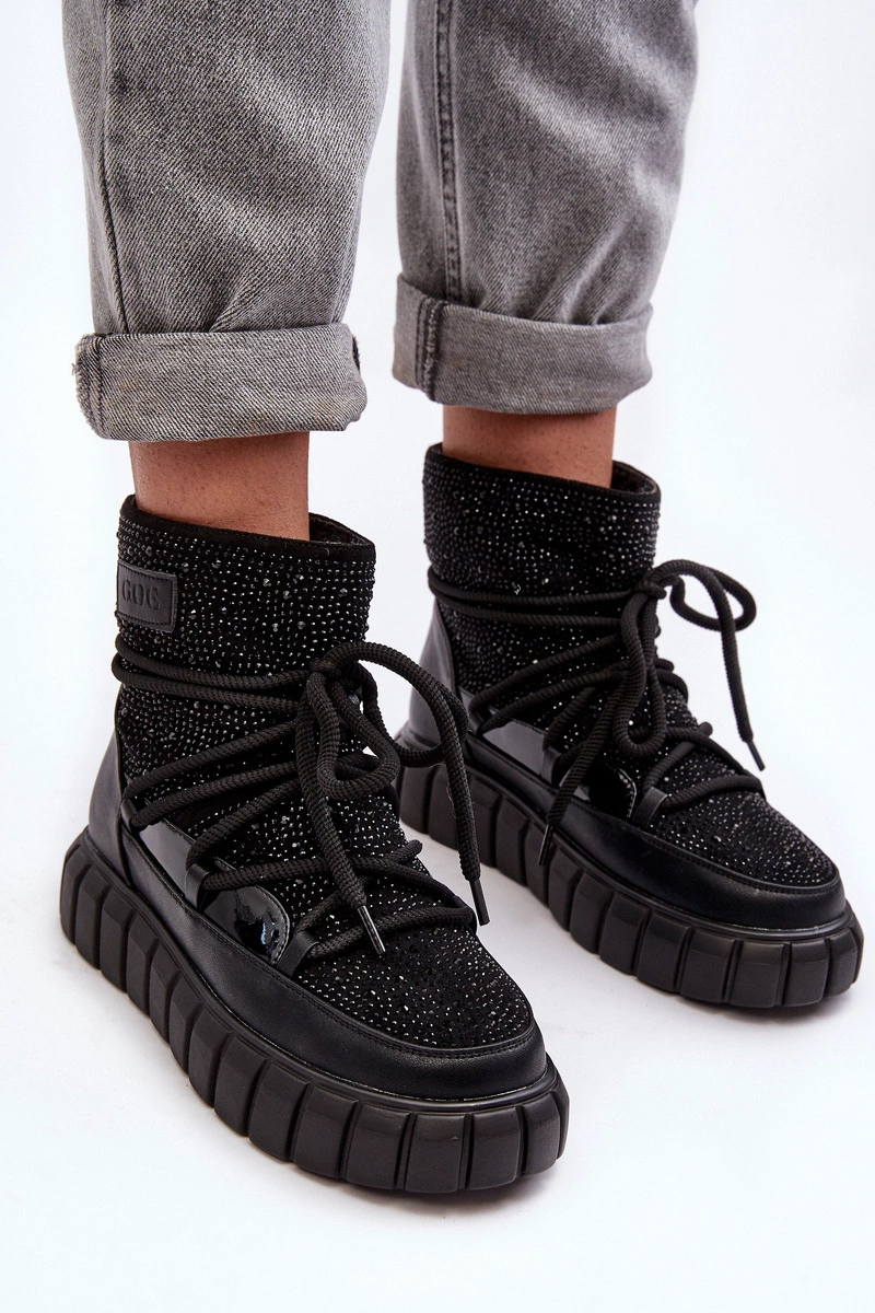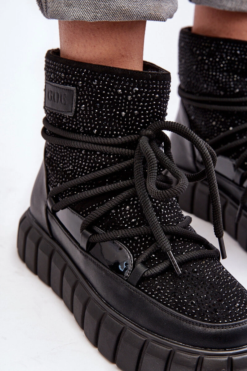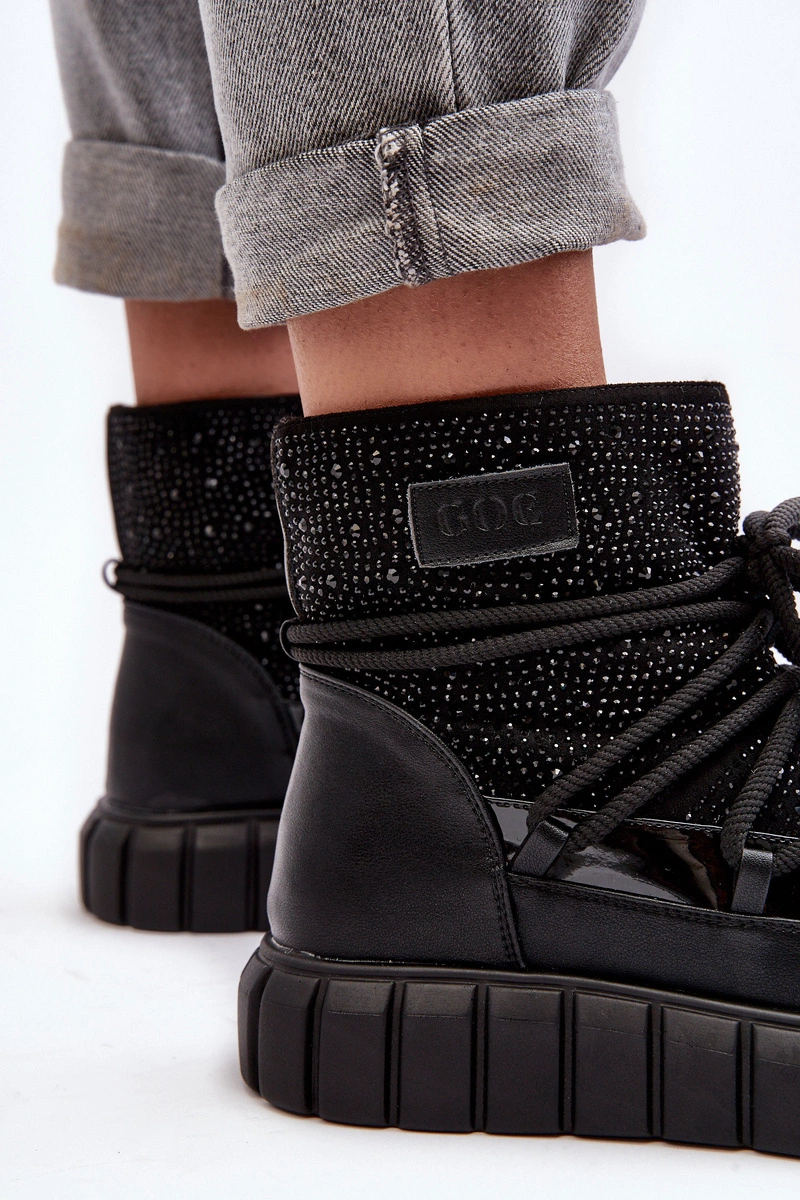 Ocieplane Śniegowce Zdobione Dżetami GOE MM2N4080 Czarne