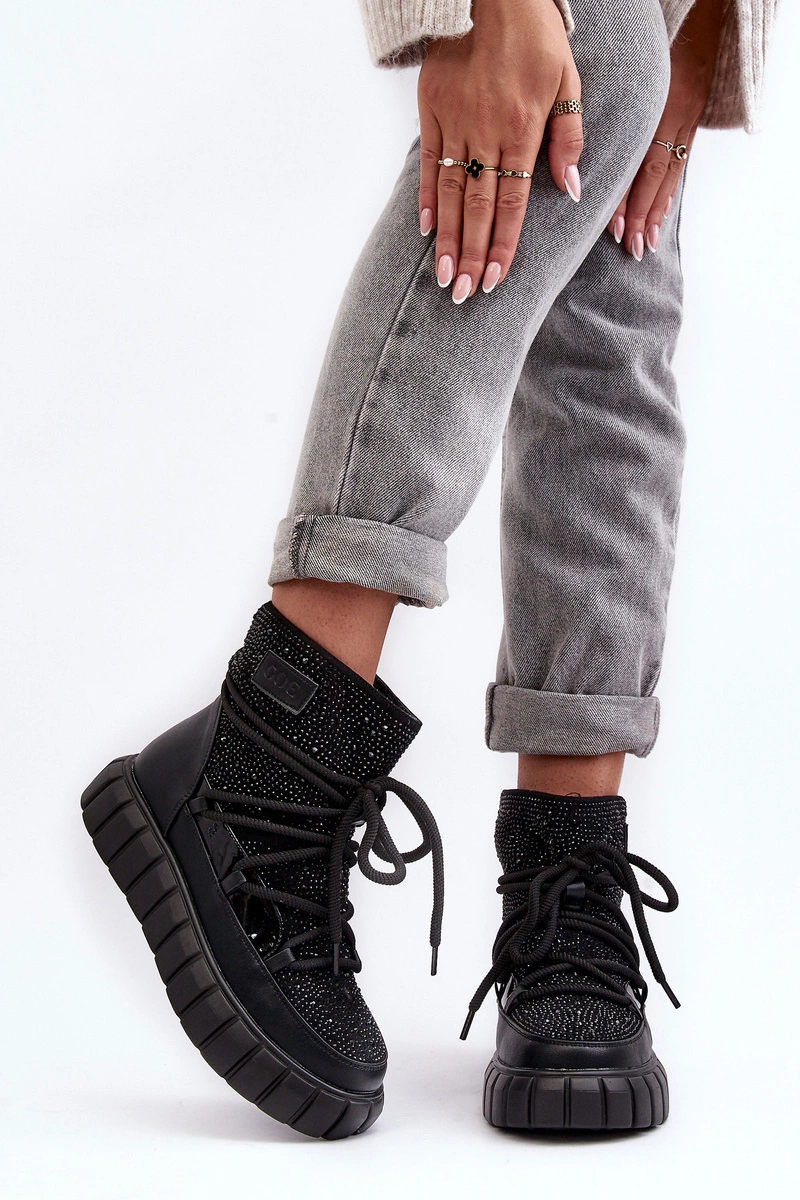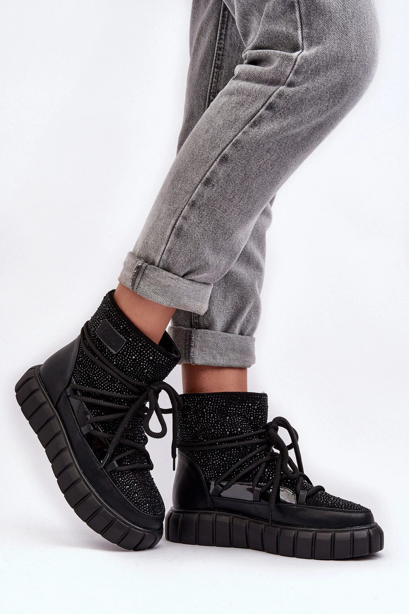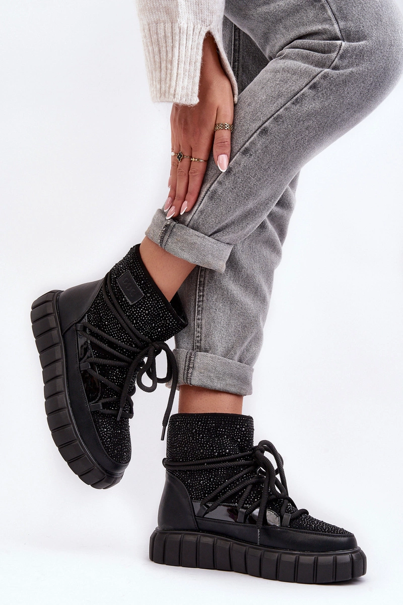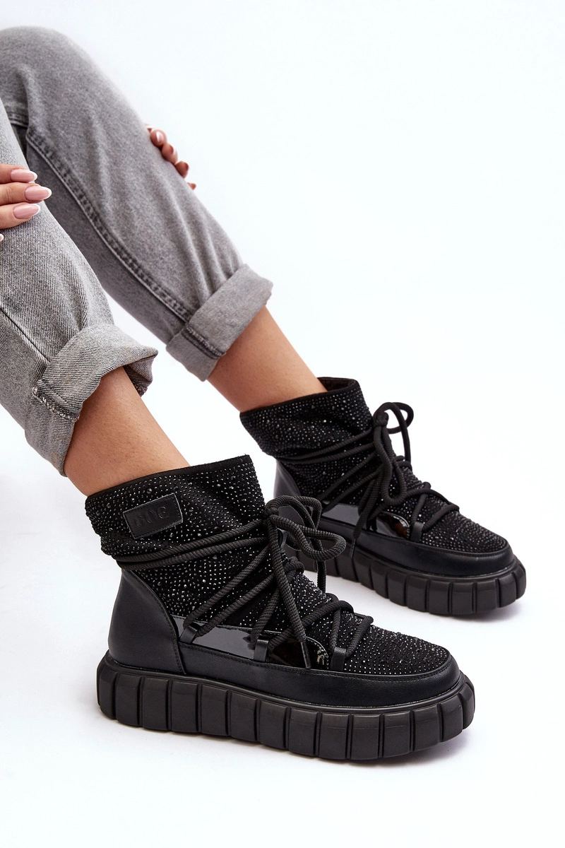 Ocieplane Śniegowce Zdobione Dżetami GOE MM2N4080 Czarne
