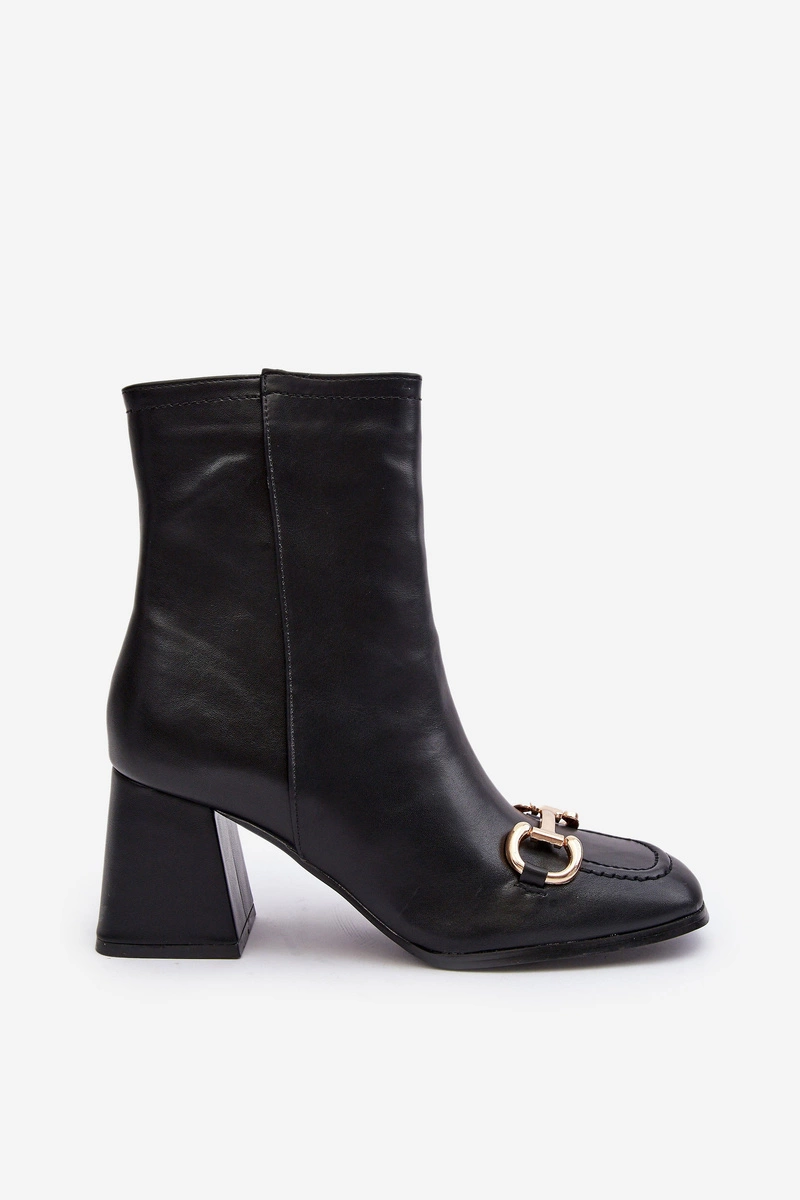 Skórzane Botki Na Obcasie Z Ozdobą Czarne Pamelinta