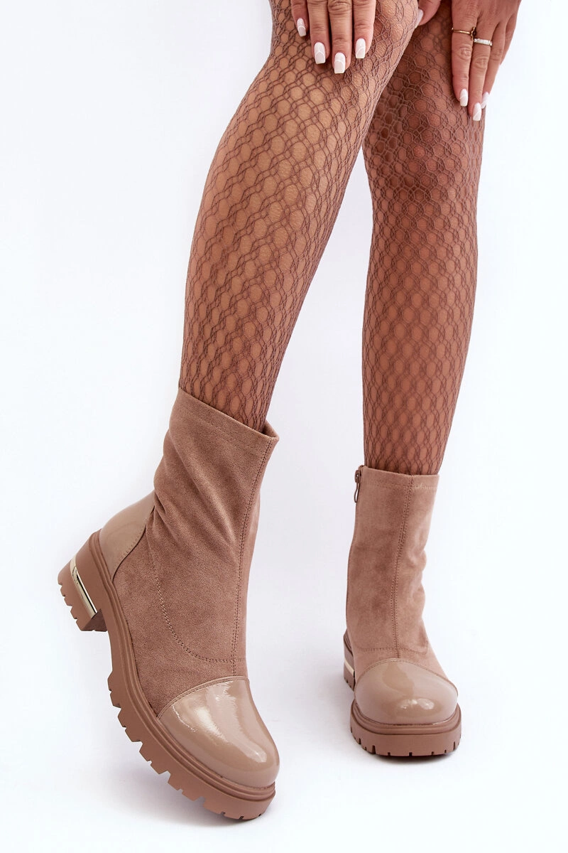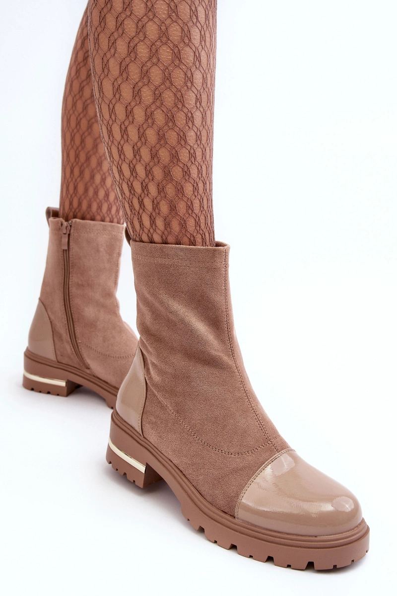 Skórzane Klasyczne Botki Na Płaskim Obcasie Beżowe Shendete