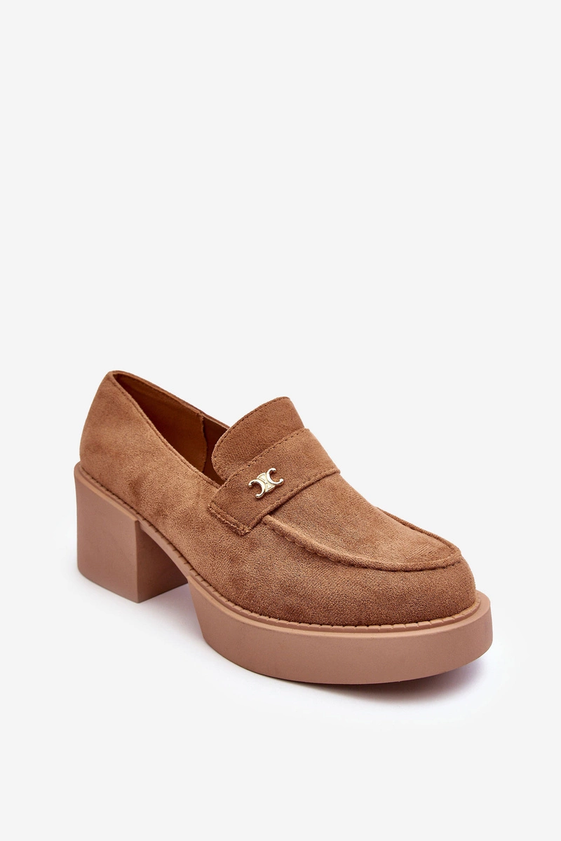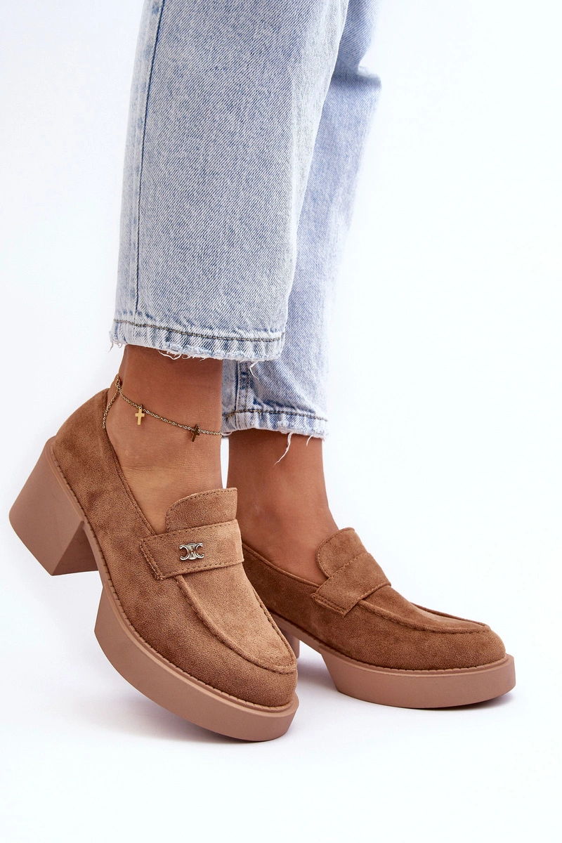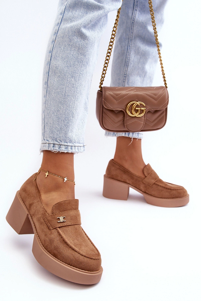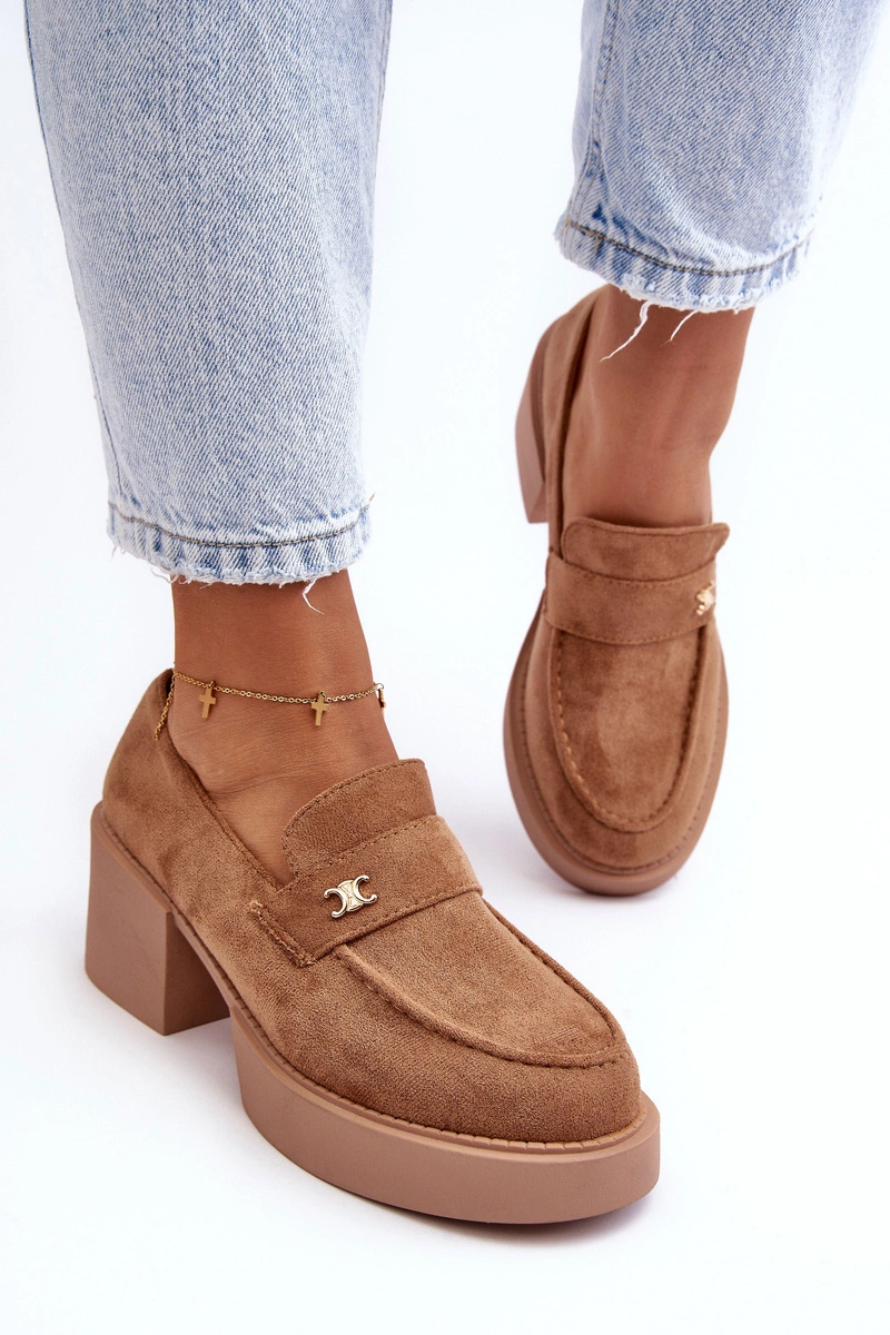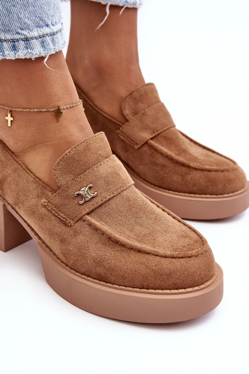 Zamszowe Półbuty Na Obcasie Damskie Ciemnobeżowe Afnira
