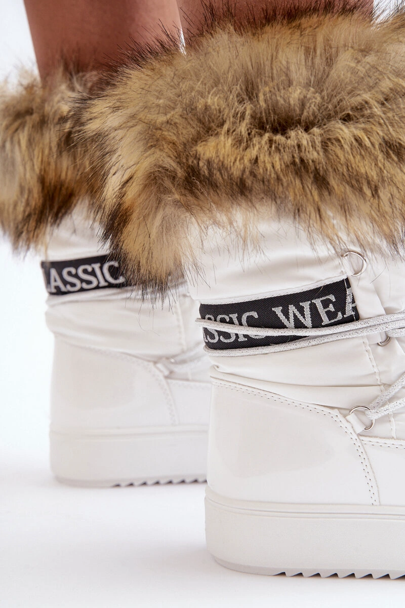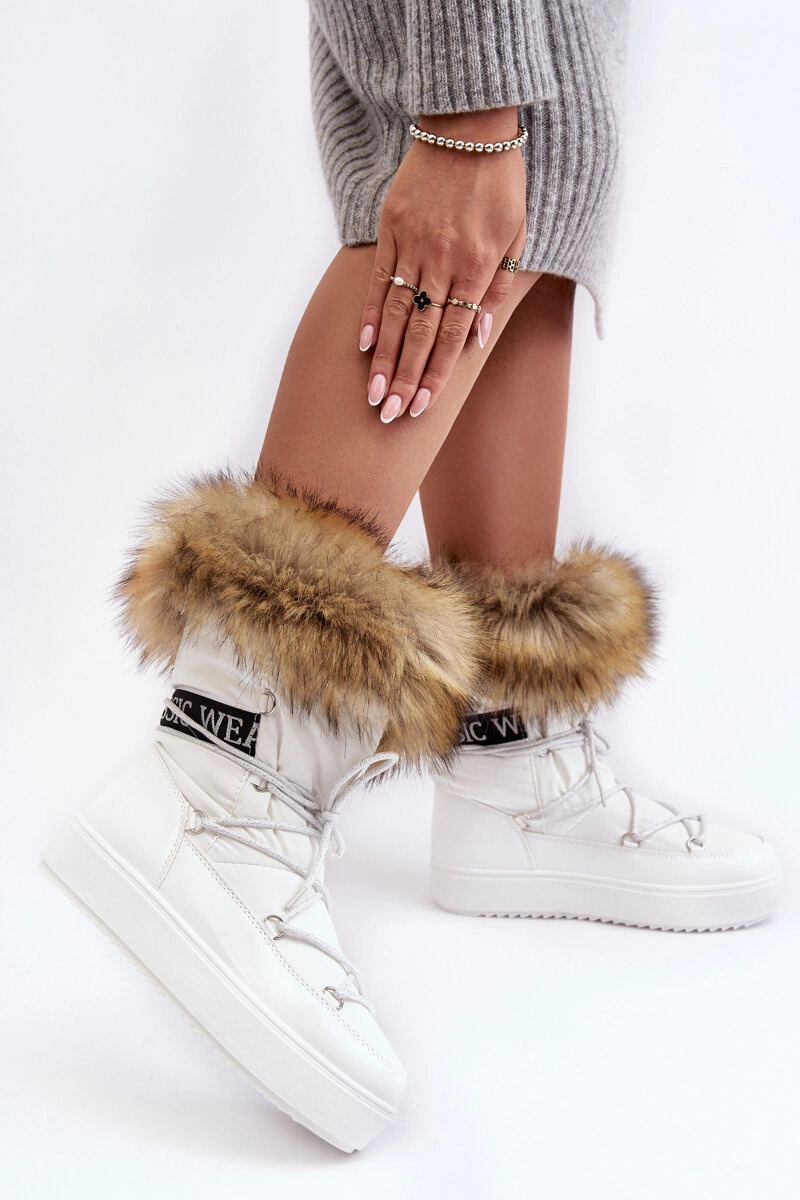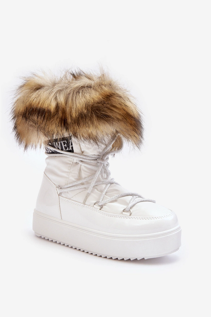 Damskie Śniegowce Sznurowane Białe Santero