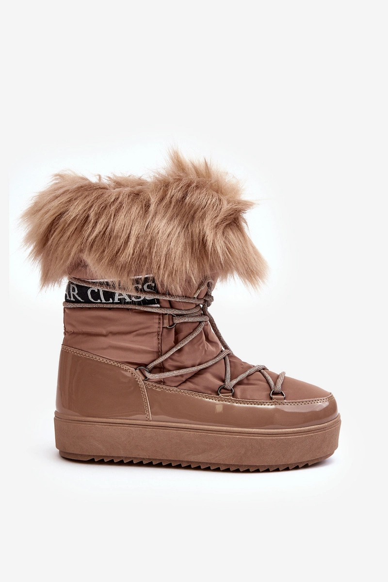 Damskie Śniegowce Sznurowane Ciemnobeżowe Santero