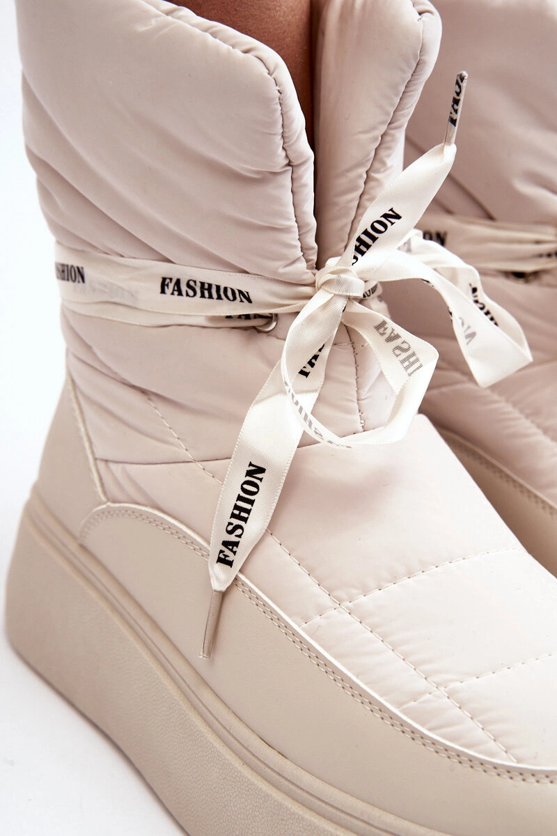 Śniegowce Damskie Z Ozdobnym Wiązaniem Jasnobeżowe Siracna