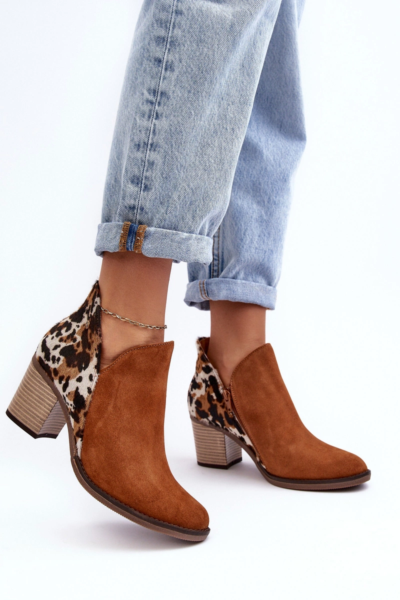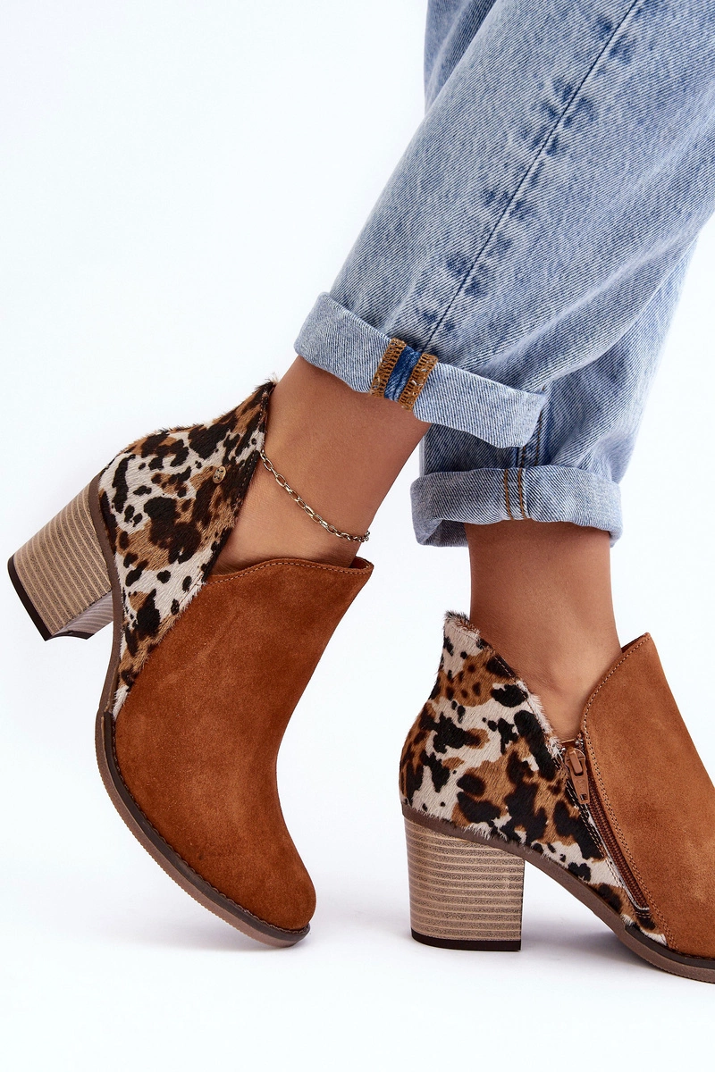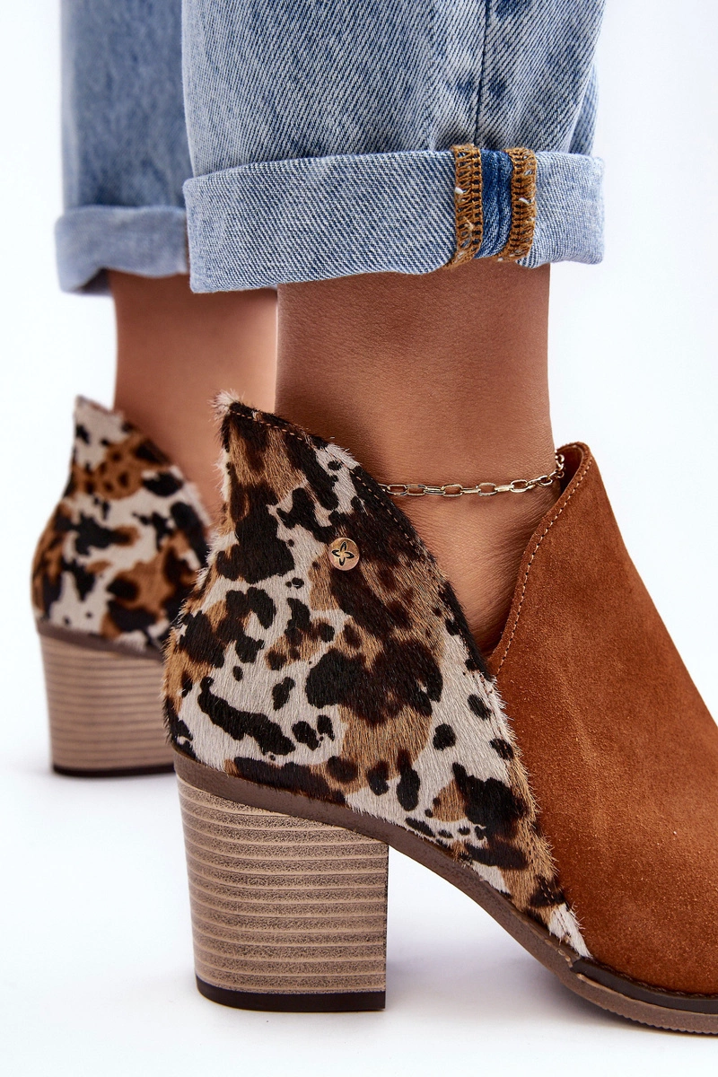 Damskie Skórzane Botki Na Słupku Maciejka Brązowe 04492-98