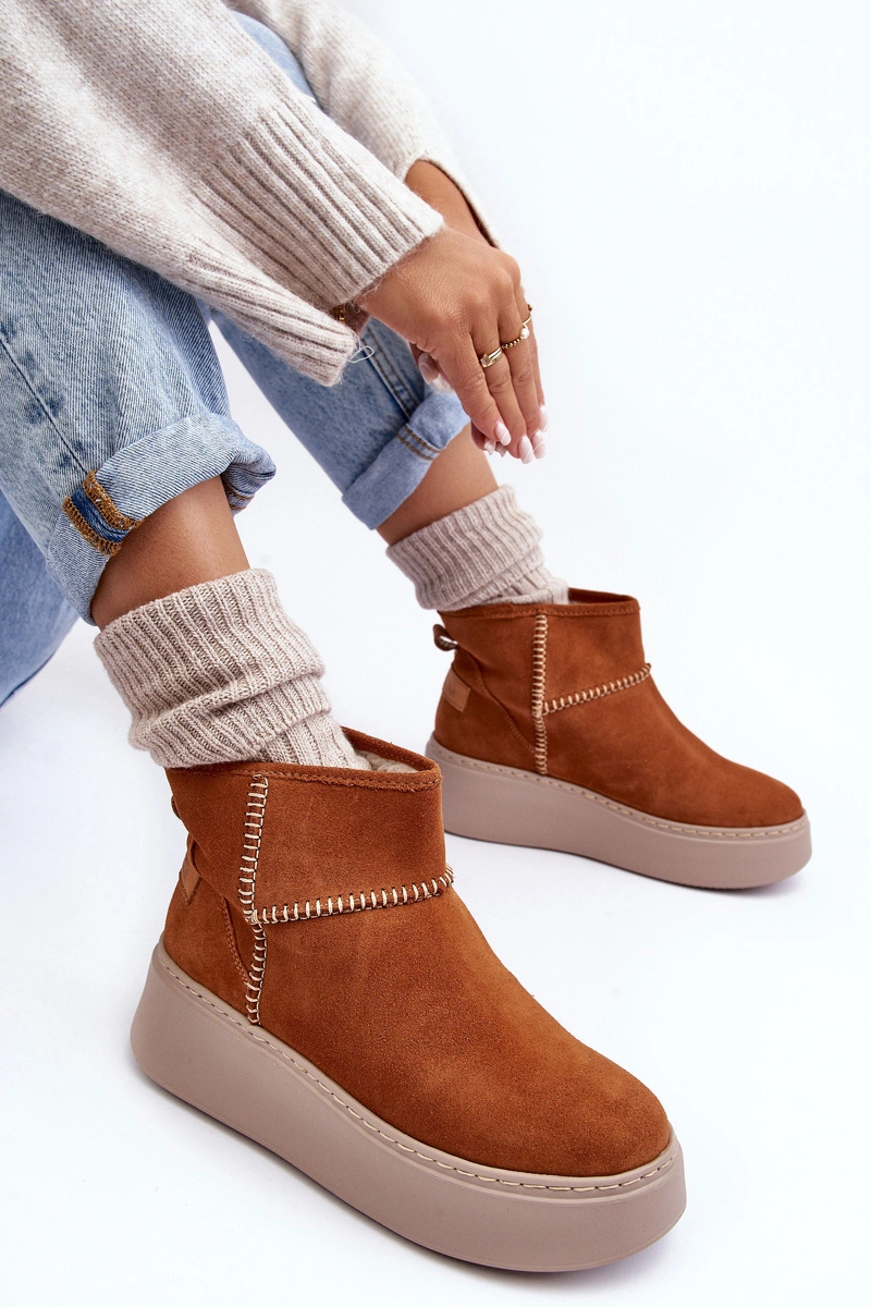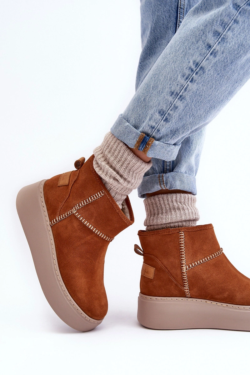 Damskie Zamszowe Śniegowce Maciejka 06257-29 Brązowe