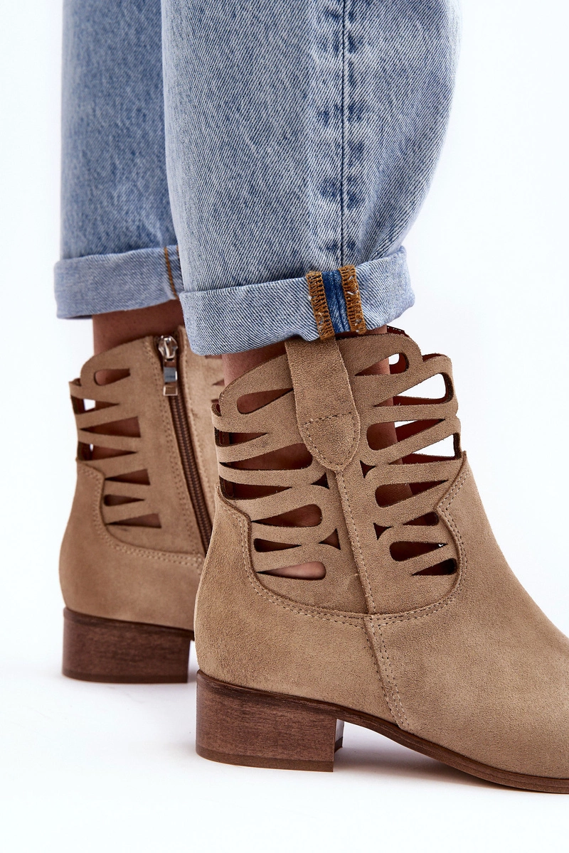 Ażurowe Damskie Skórzane Botki Beżowe Lewski 3329
