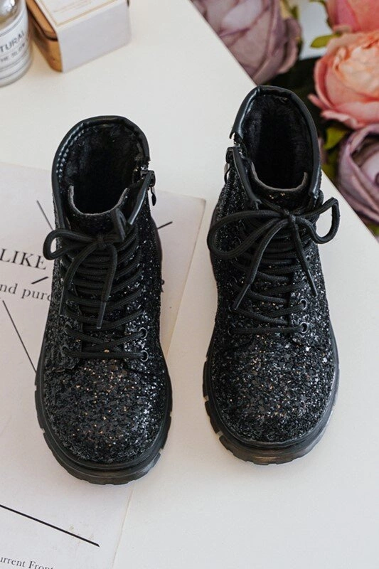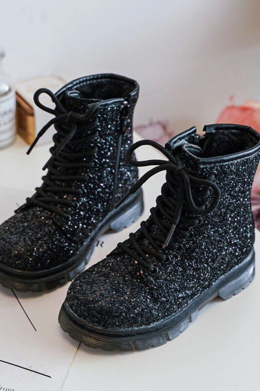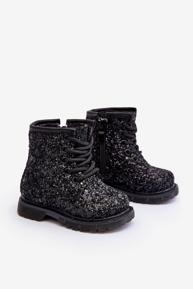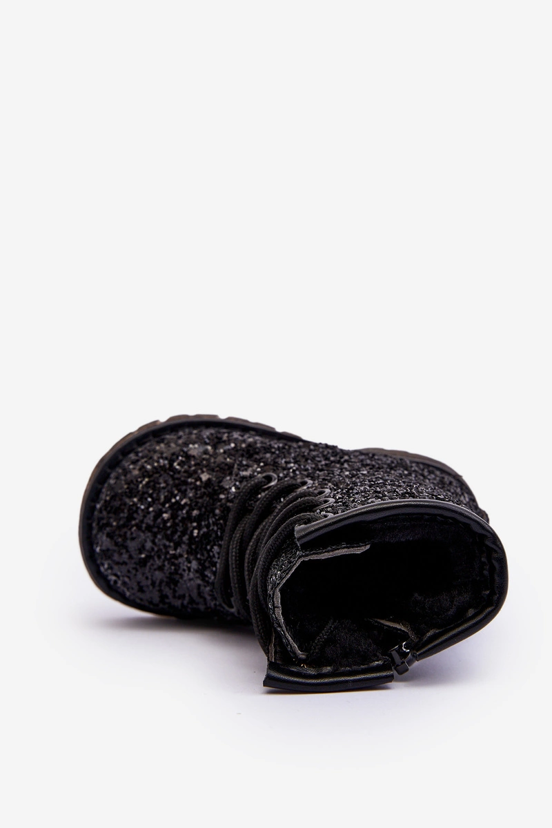 Dziecięce Brokatowe Botki Ocieplane z Suwakiem Czarne Saussa