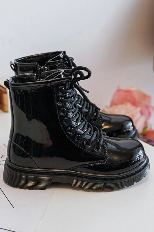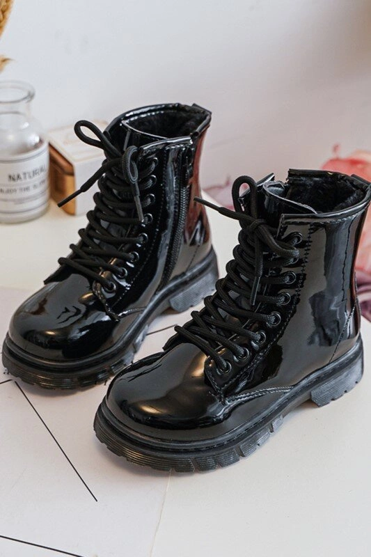 Dziecięce Botki Lakierowane Z Suwakiem Czarne Tibbie