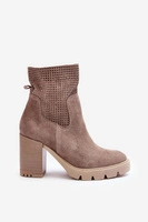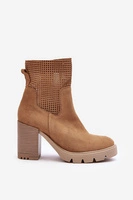 Zamszowe Ażurowe Botki Damskie Na Słupku Camel Lewski 3386