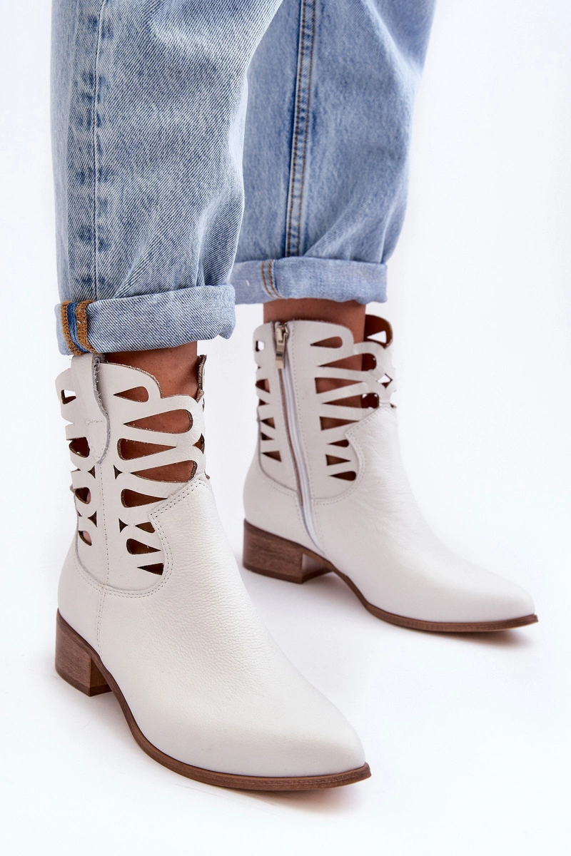 Ażurowe Damskie Skórzane Botki Białe Lewski 3329