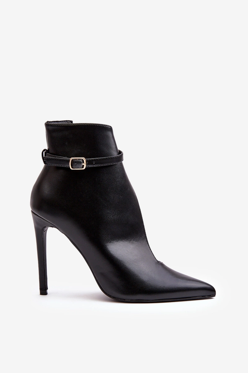 Skórzane Botki Damskie Na Szpilce Czarne Amalundi