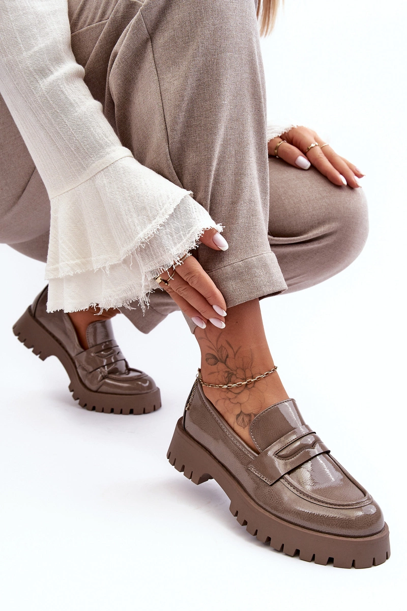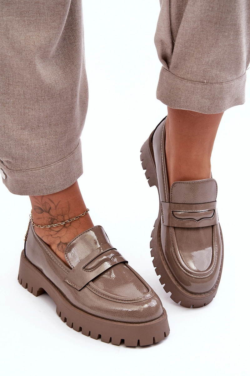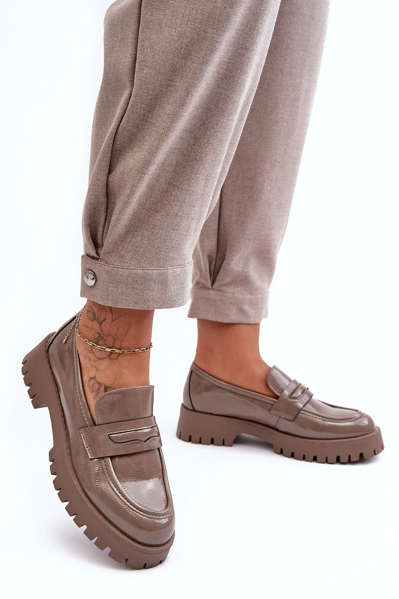 Lakierowane Półbuty Loafersy Na Płaskim Obcasie Beżowe Jannah