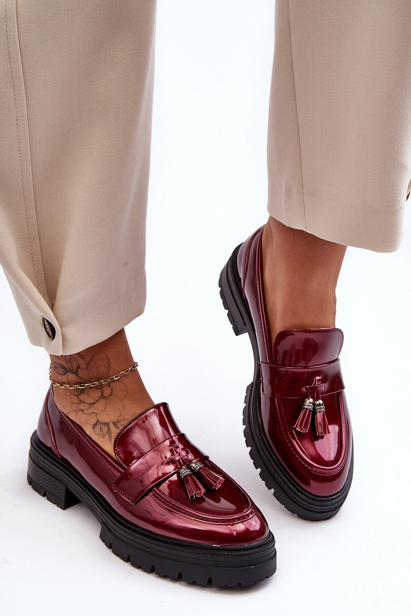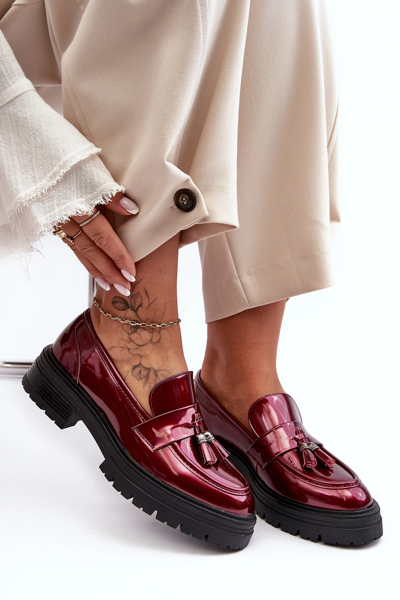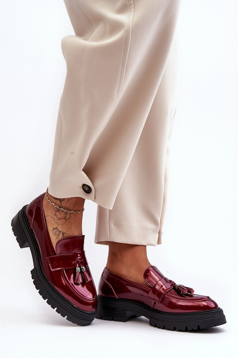 Lakierowane Półbuty Loafersy Z Frędzlami Bordowe Velenase