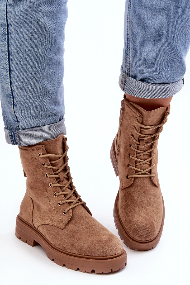 Damskie Botki Workery Na Suwak Jasnobrązowe Ninsuni