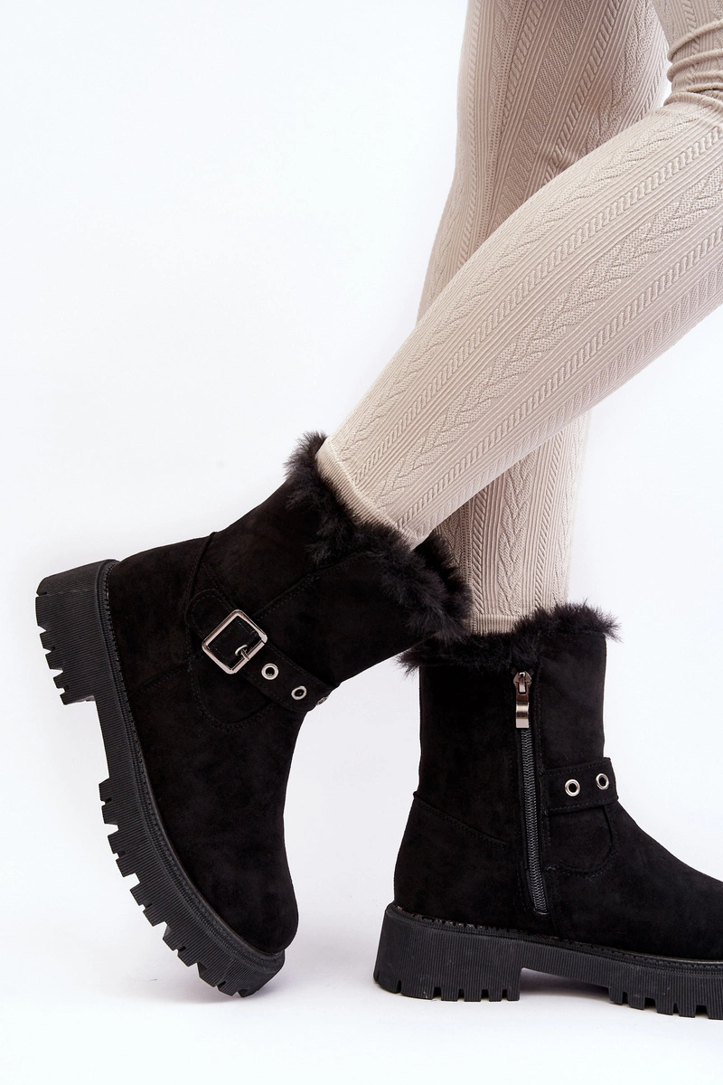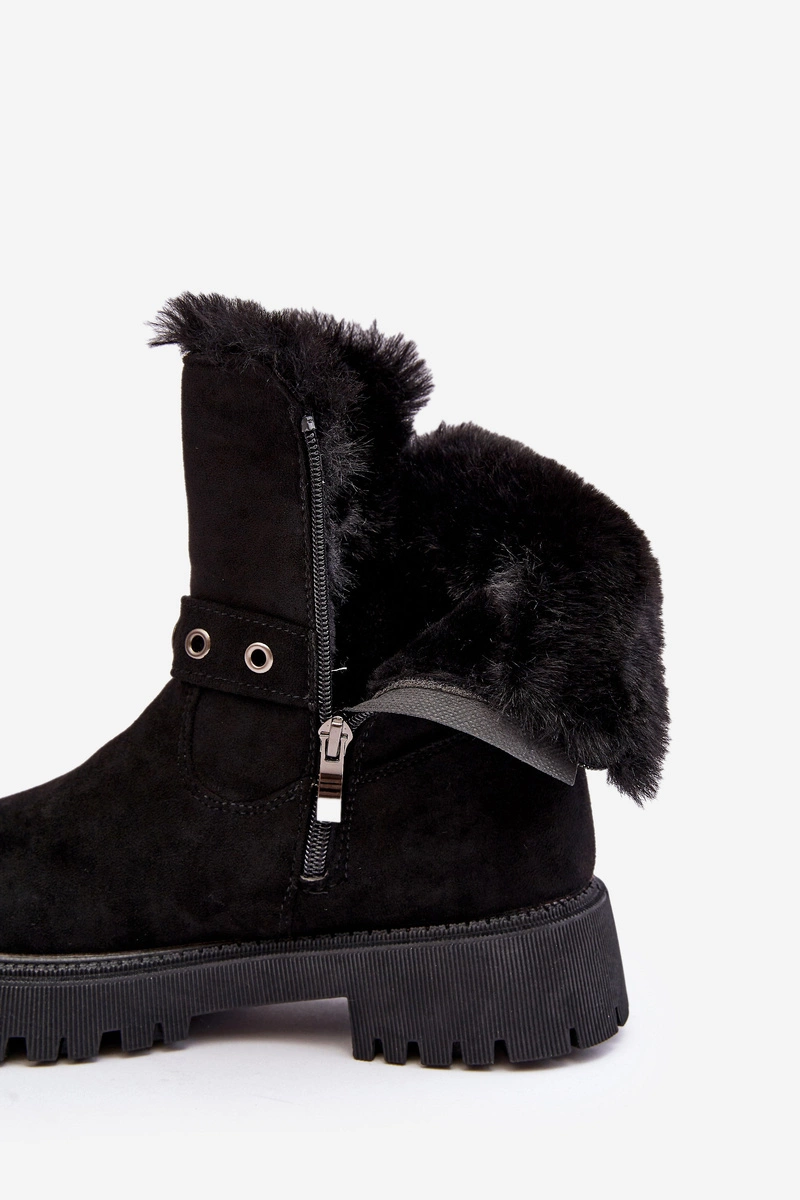 Botki Damskie Z Futerkiem Na Suwak Czarne Morcos