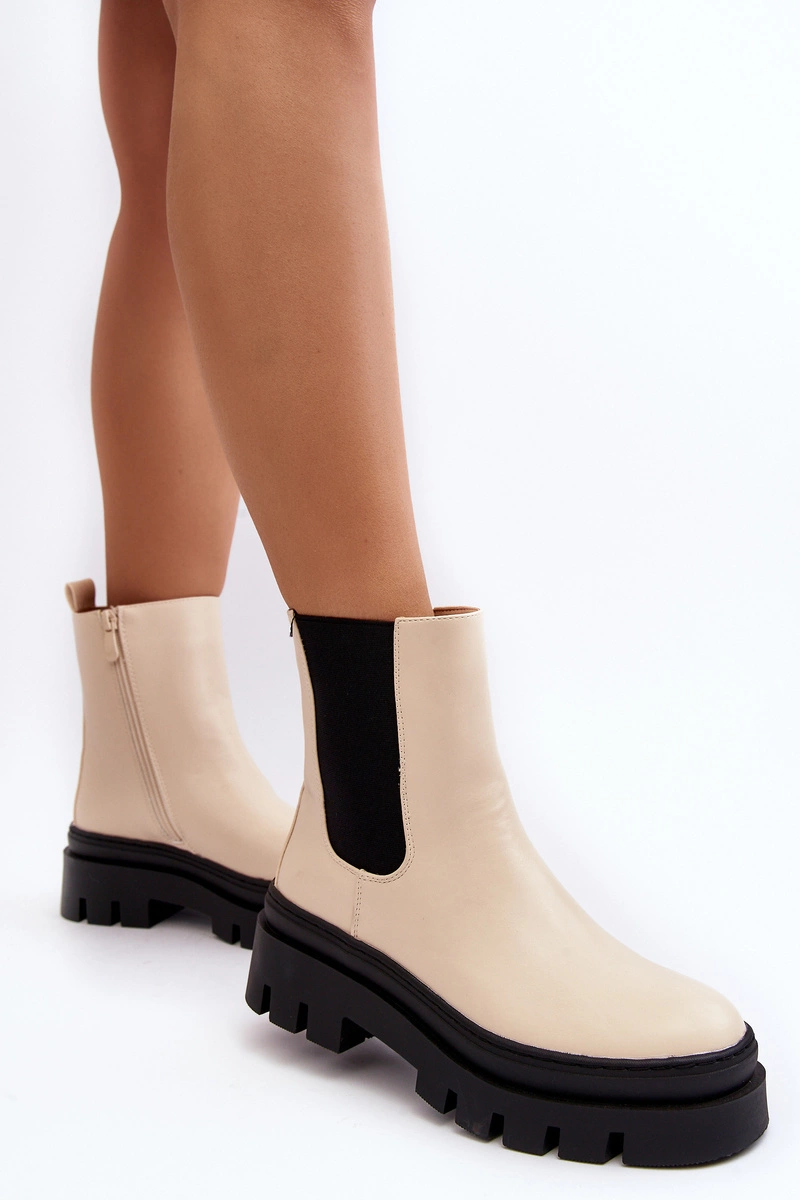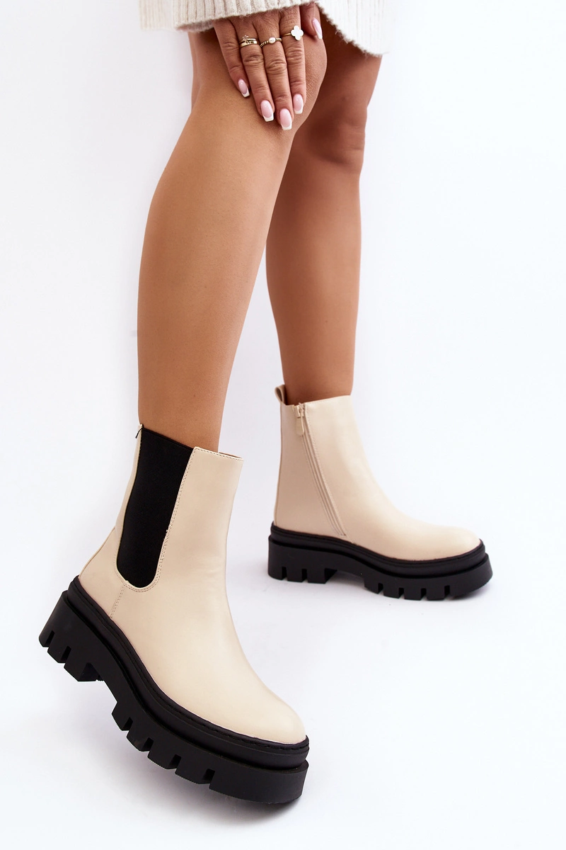 Modne, damskie botki zostały osadzone na płaskim, masywnym obcasie oraz platformie ze żłobieniami. Wykonane z eko skóry. Botki zostały ocieplone kocem obuwniczym. Dodatkowo posiadają usztywniany zapiętek. Model ten posiada zapinanie z boku cholewki. Ten fason z pewnością będzie pasować do wielu jesiennych stylizacji! Przy wyborze rozmiaru prosimy sugerować się tabelą rozmiarów.