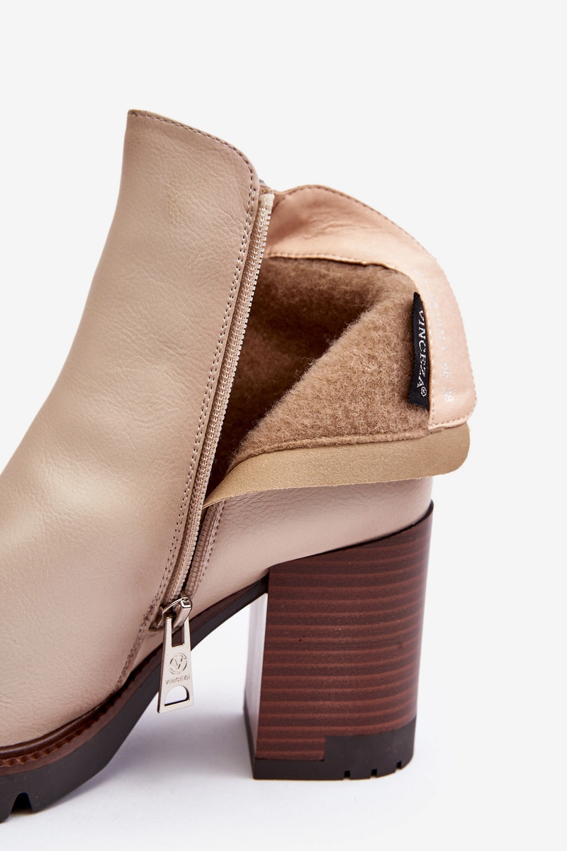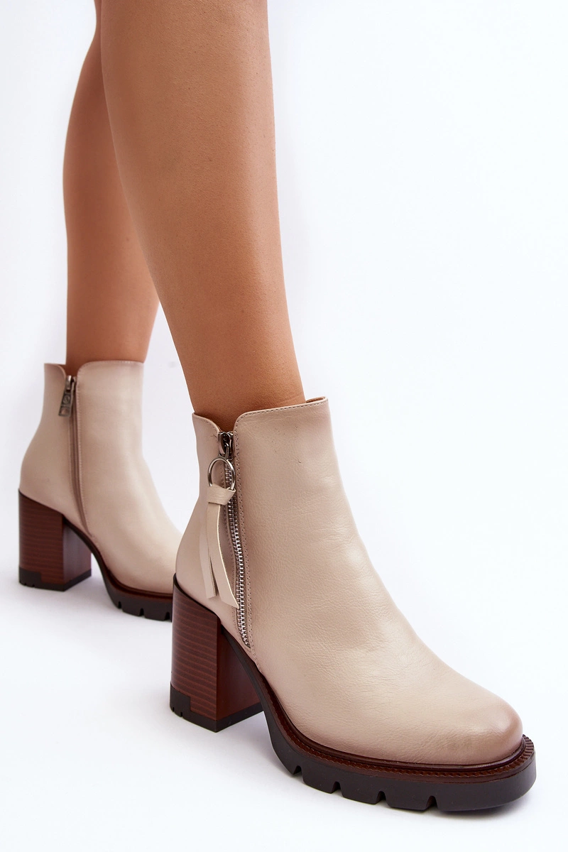 Damskie Skórzane Botki Na Słupku Beżowe Brittney