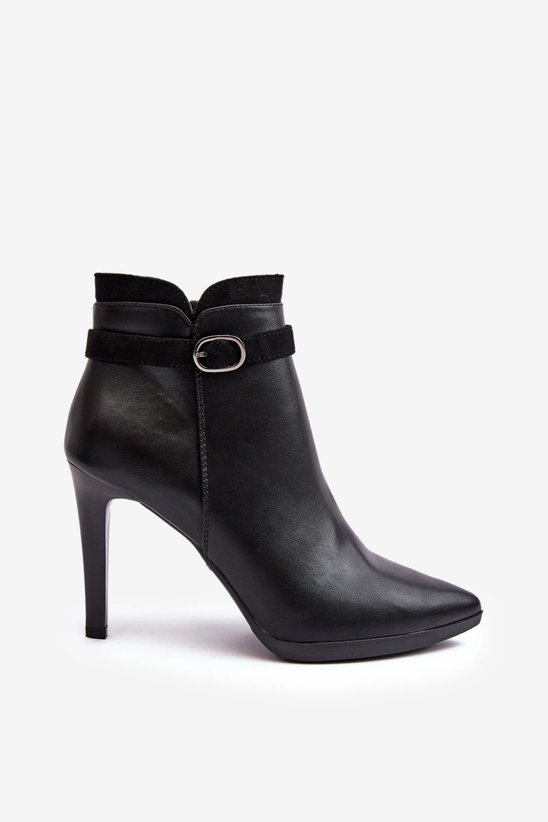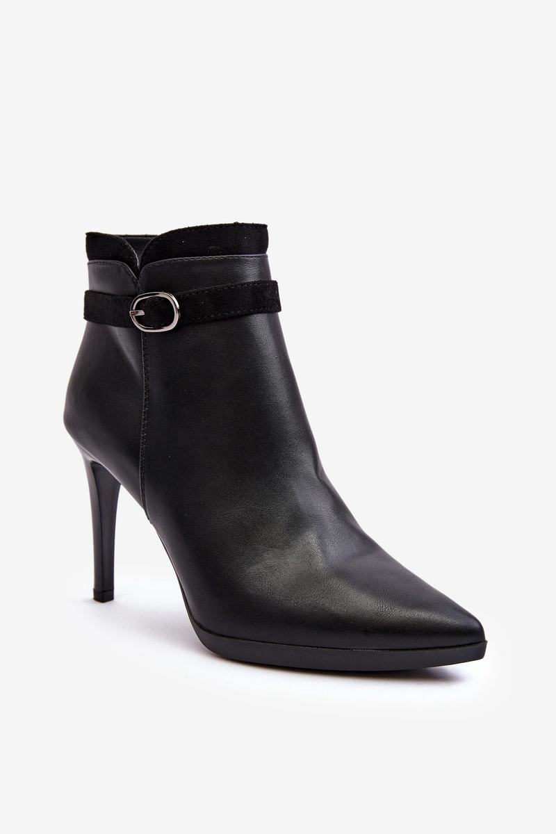 Damskie Botki Na Szpilce Z Klamrą Ocieplane Czarne Aesha