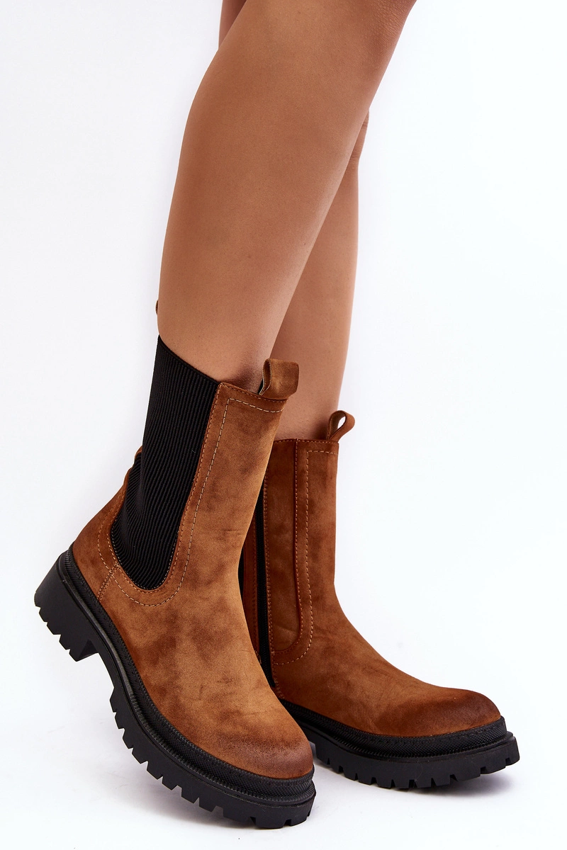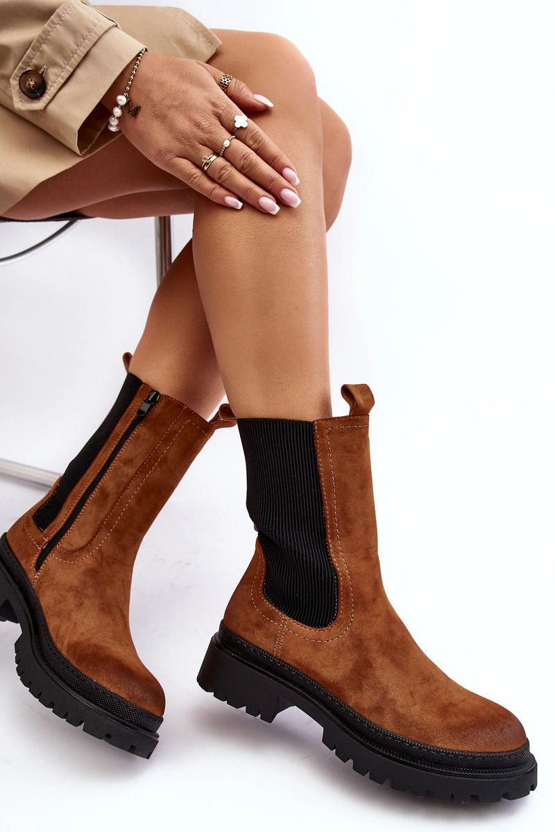 Damskie Botki Sztyblety Na Suwak Camel Samil