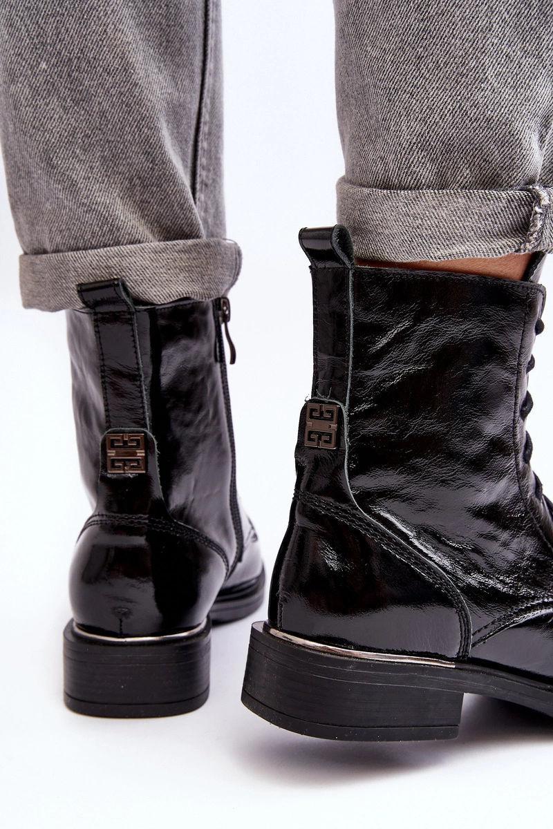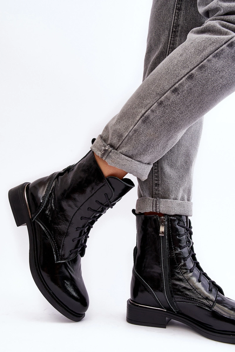 Wygodne Lakierowane Ocieplane Botki Czarne Lemar Revin