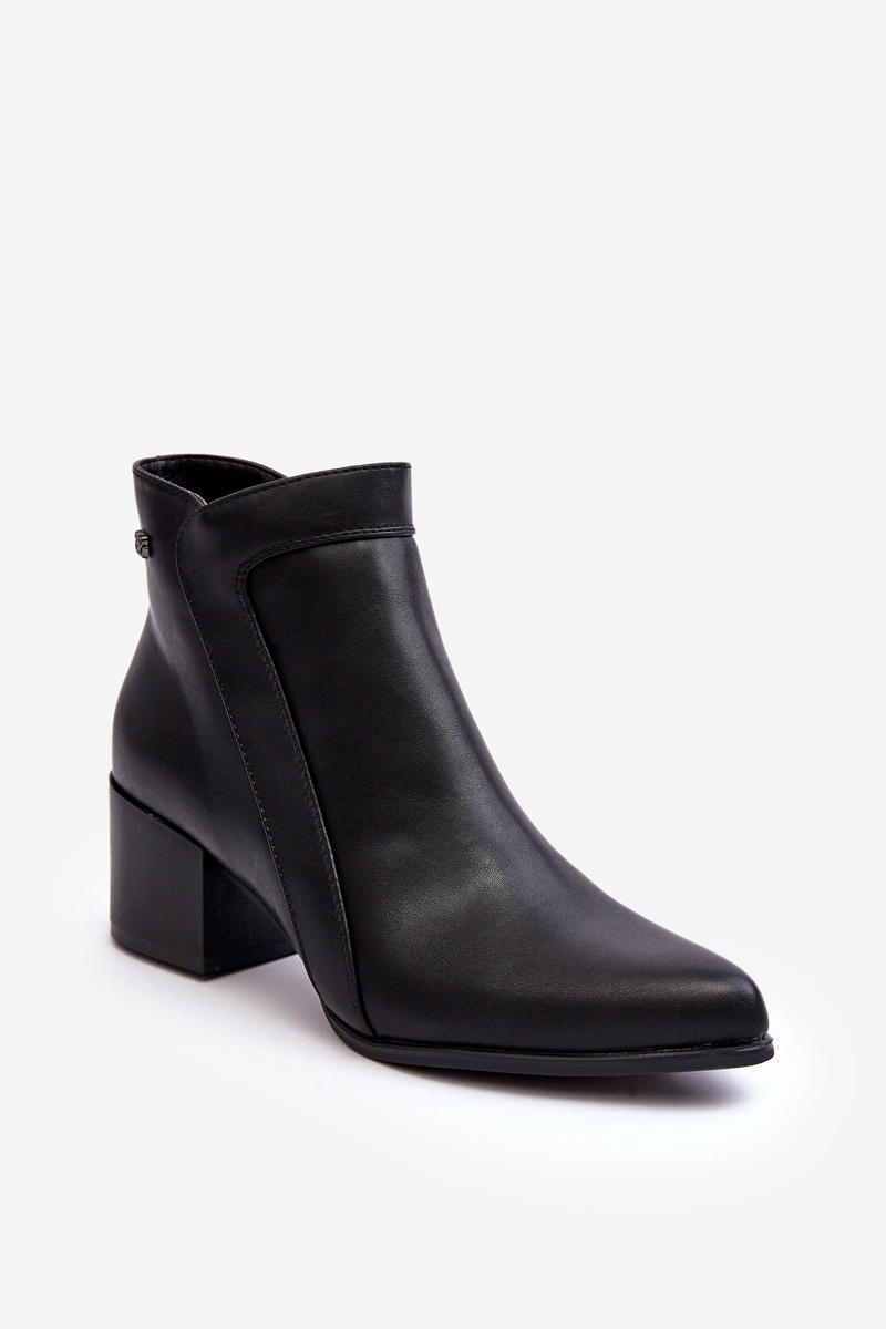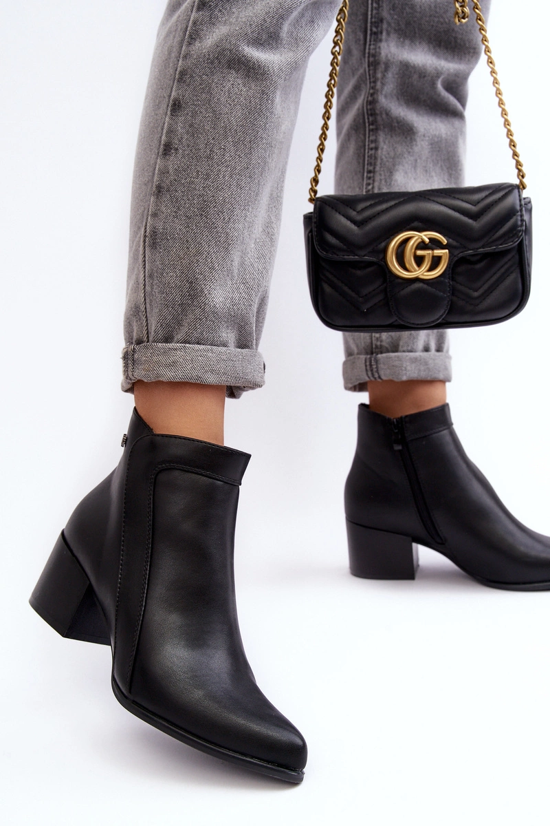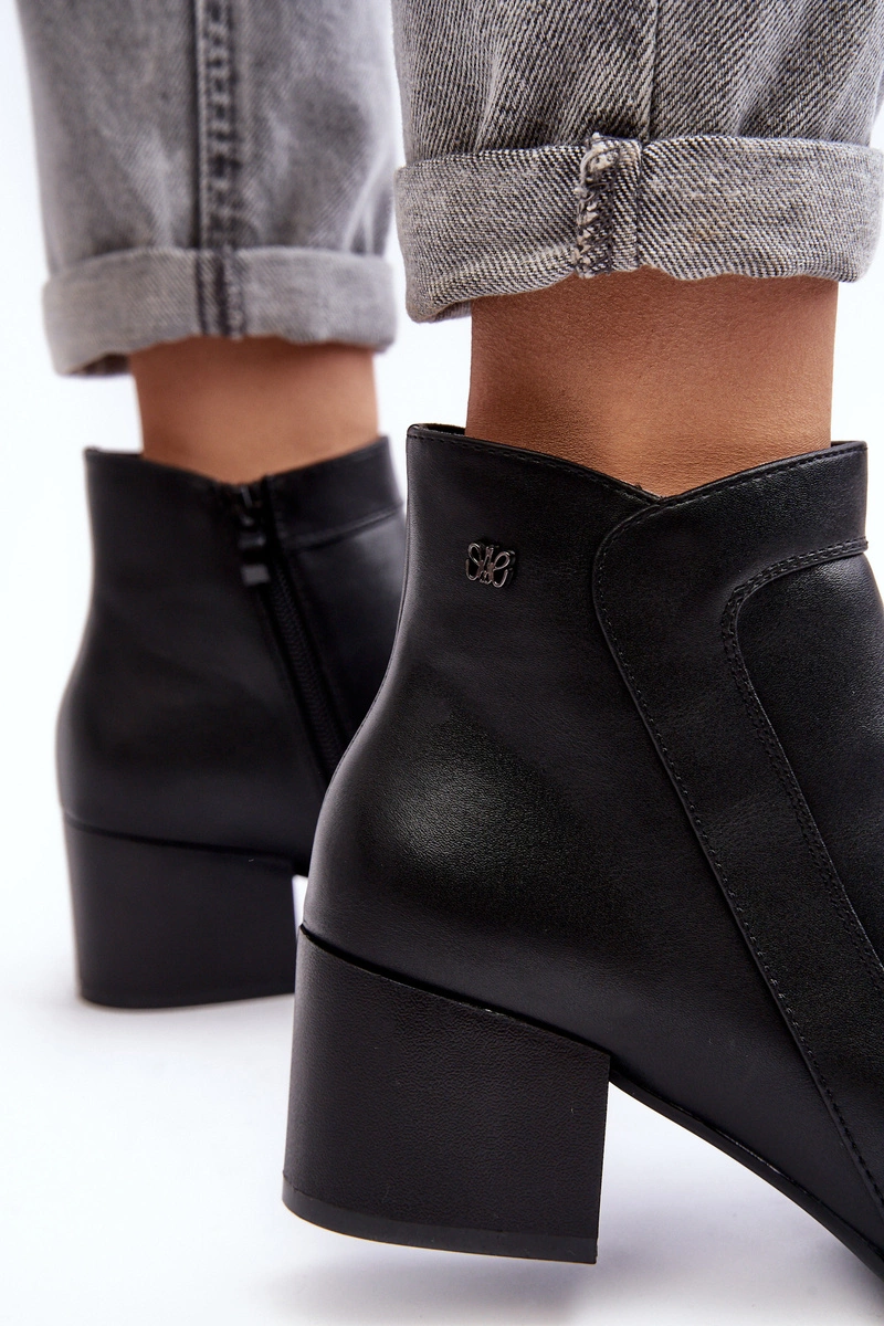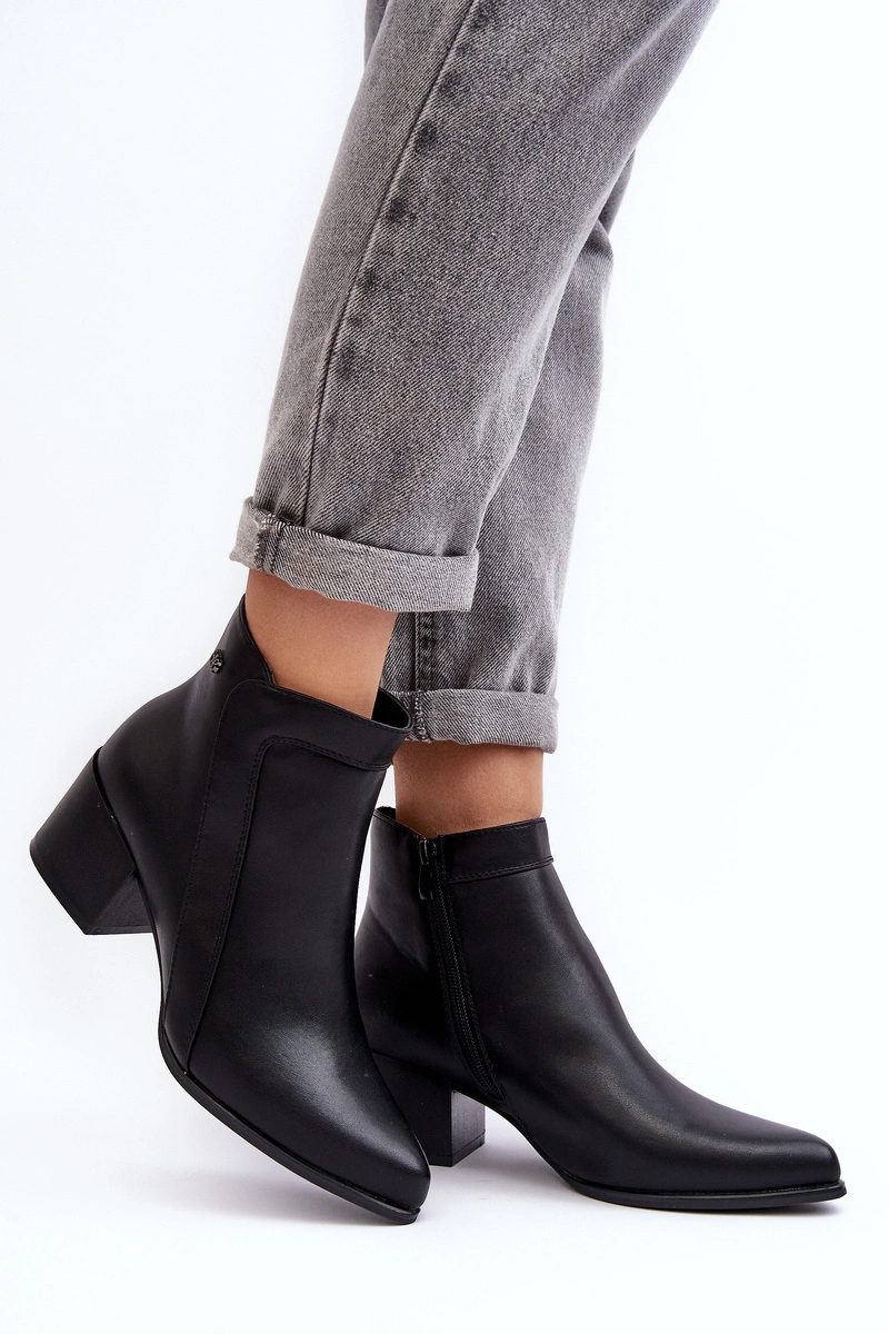 Skórzane Botki Na Niskim Obcasie Czarne Cidi