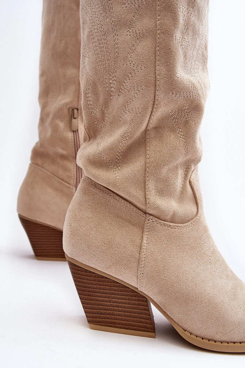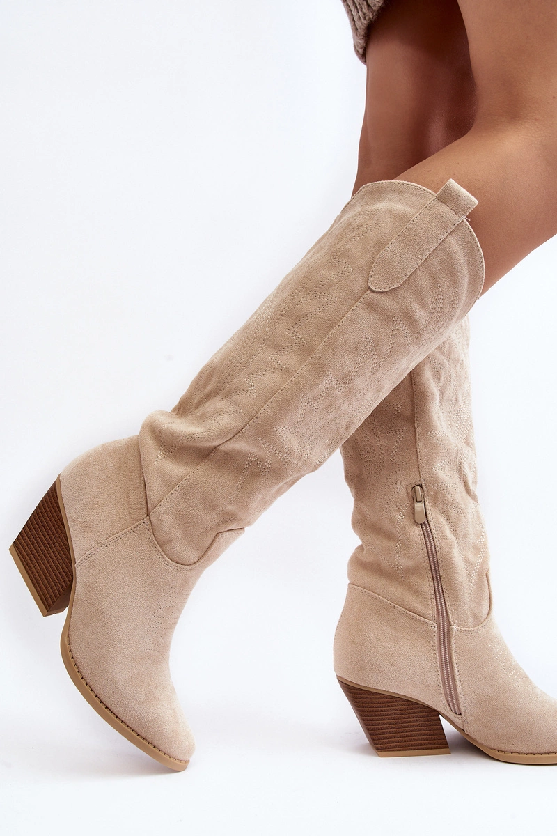 Damskie Kozaki Kowbojki Na Słupku Jasnobeżowe Sloana