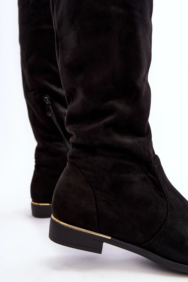 Kozaki Damskie Za Kolano Na Płaskim Obcasie Czarne Bikka