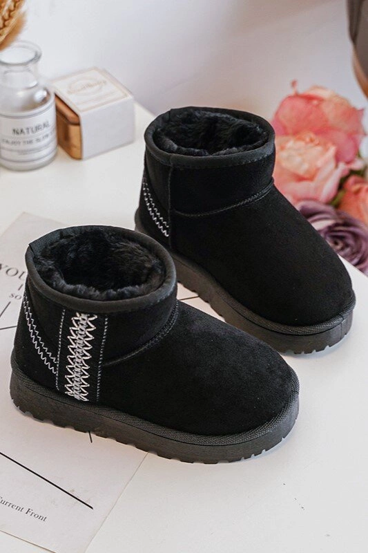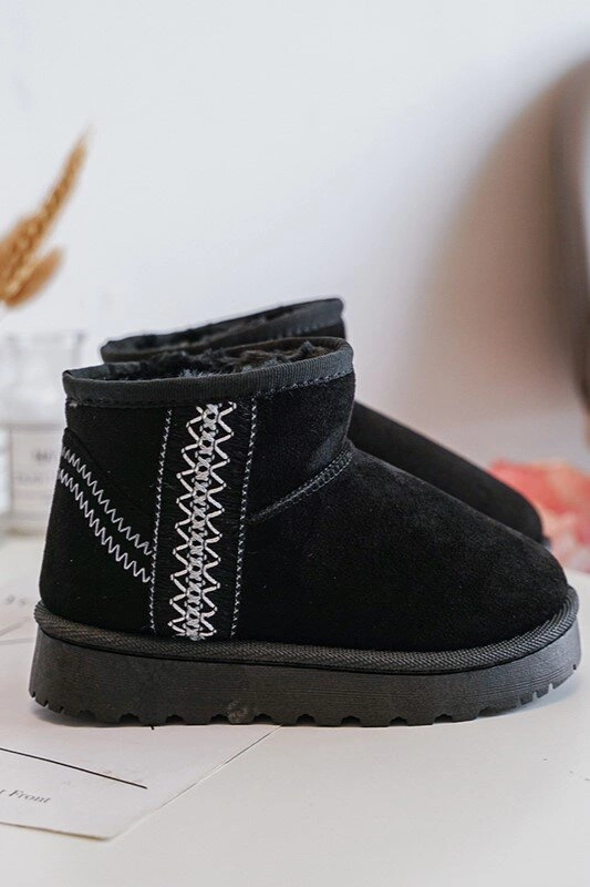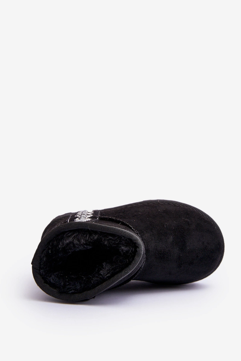 Śniegowce Botki Ocieplane Dziecięce Czarne Leonora