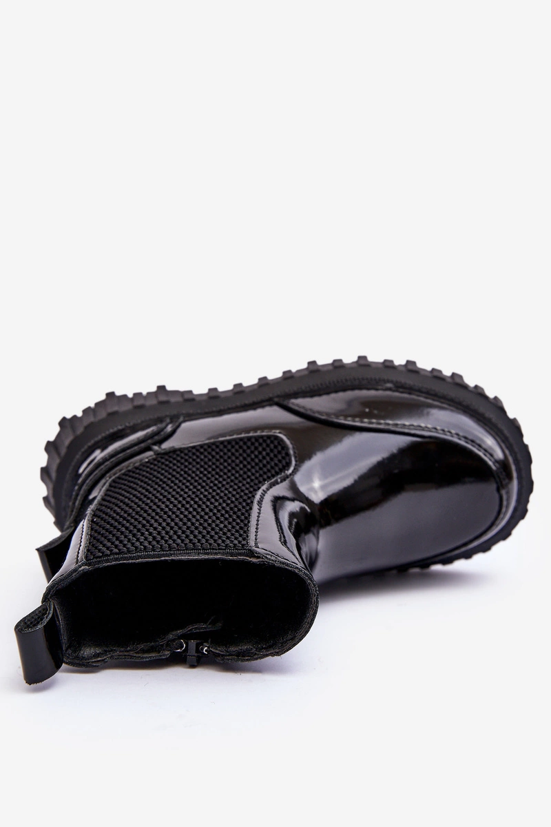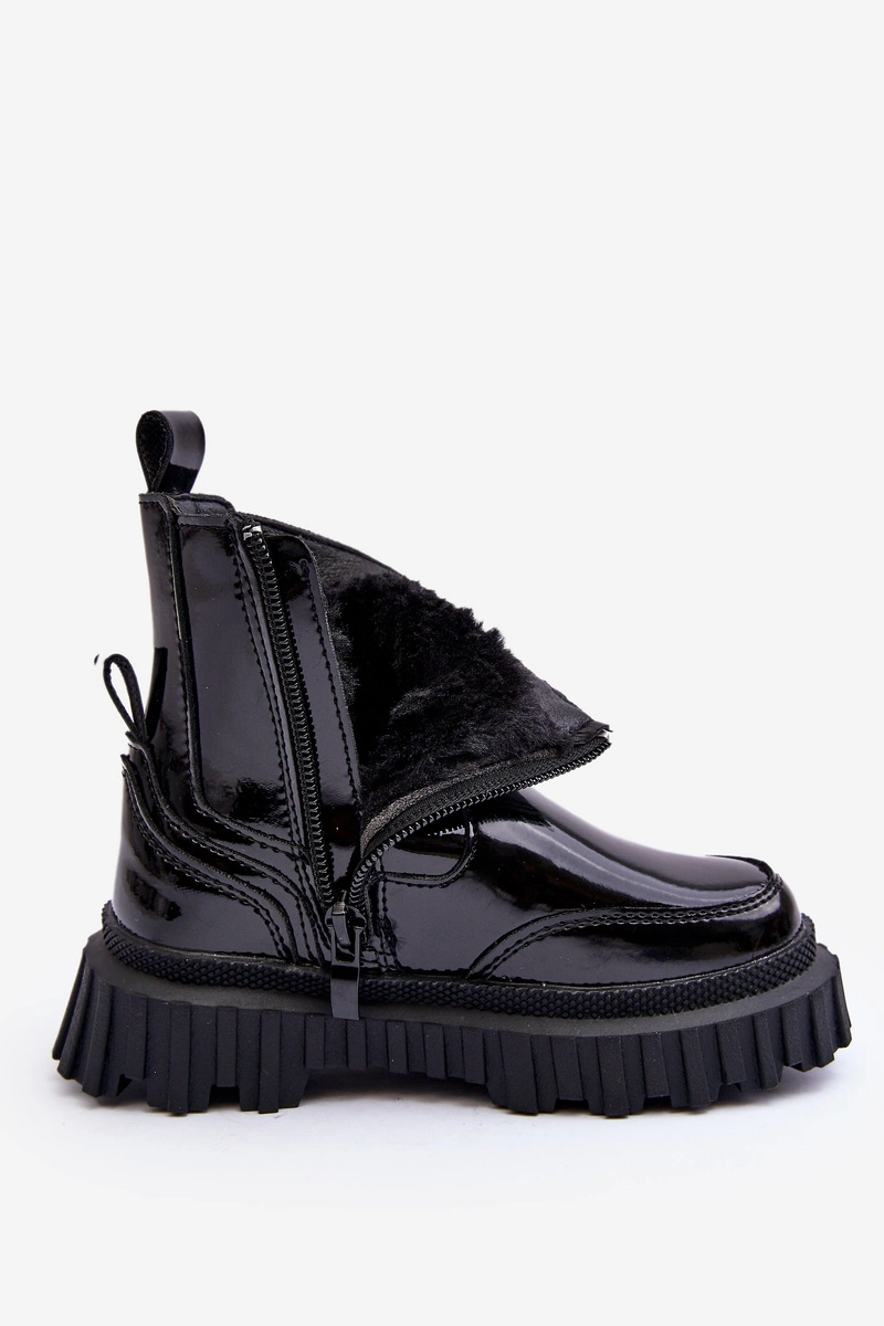 Lakierowane Botki Dziecięce Na Suwak Ocieplane Czarne Jolynn