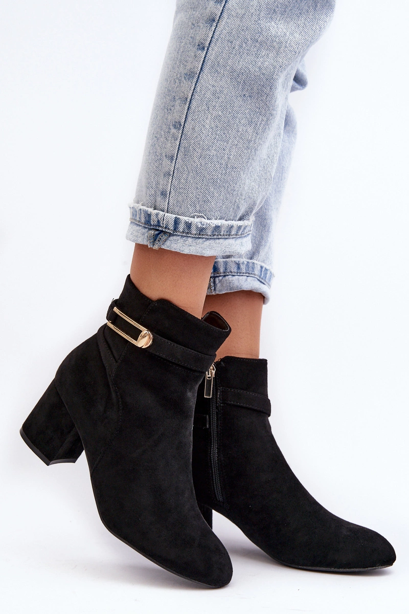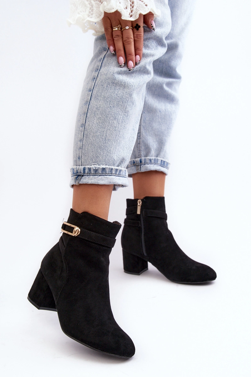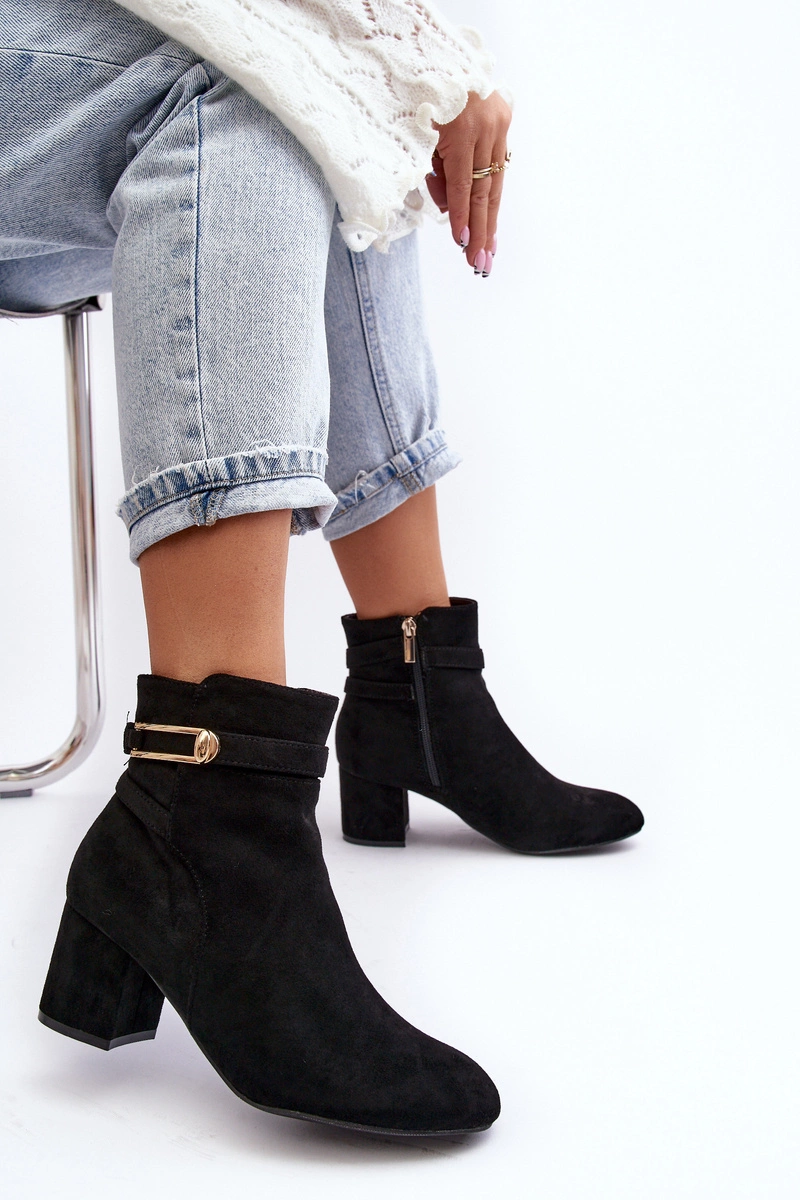 Damskie Botki Na Niskim Słupku Czarne Verice