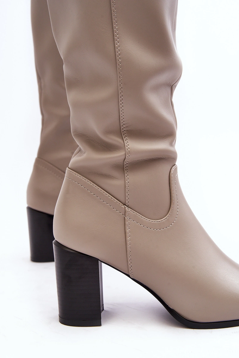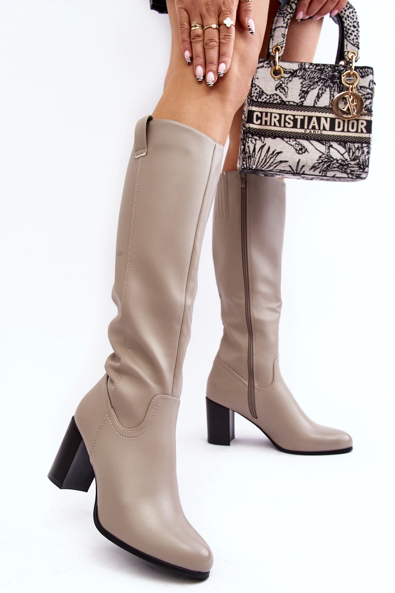 Kozaki Damskie Przed Kolano Na Słupku Szare Nelamessa