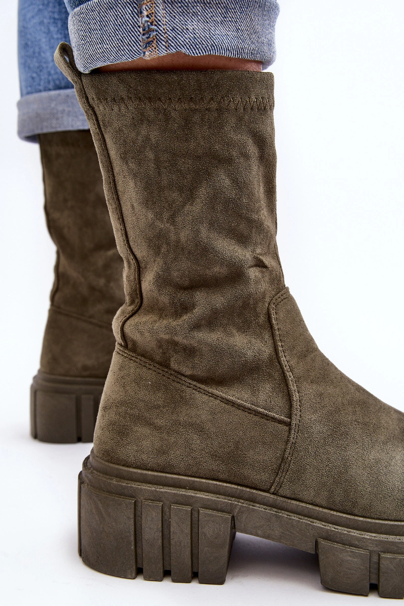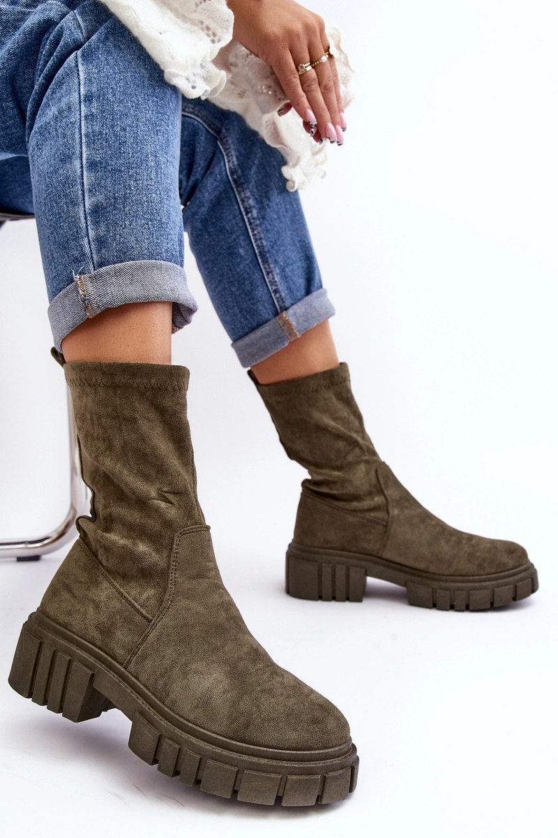 Wsuwane Botki Workery Na Płaskim Obcasie Zielone Divella