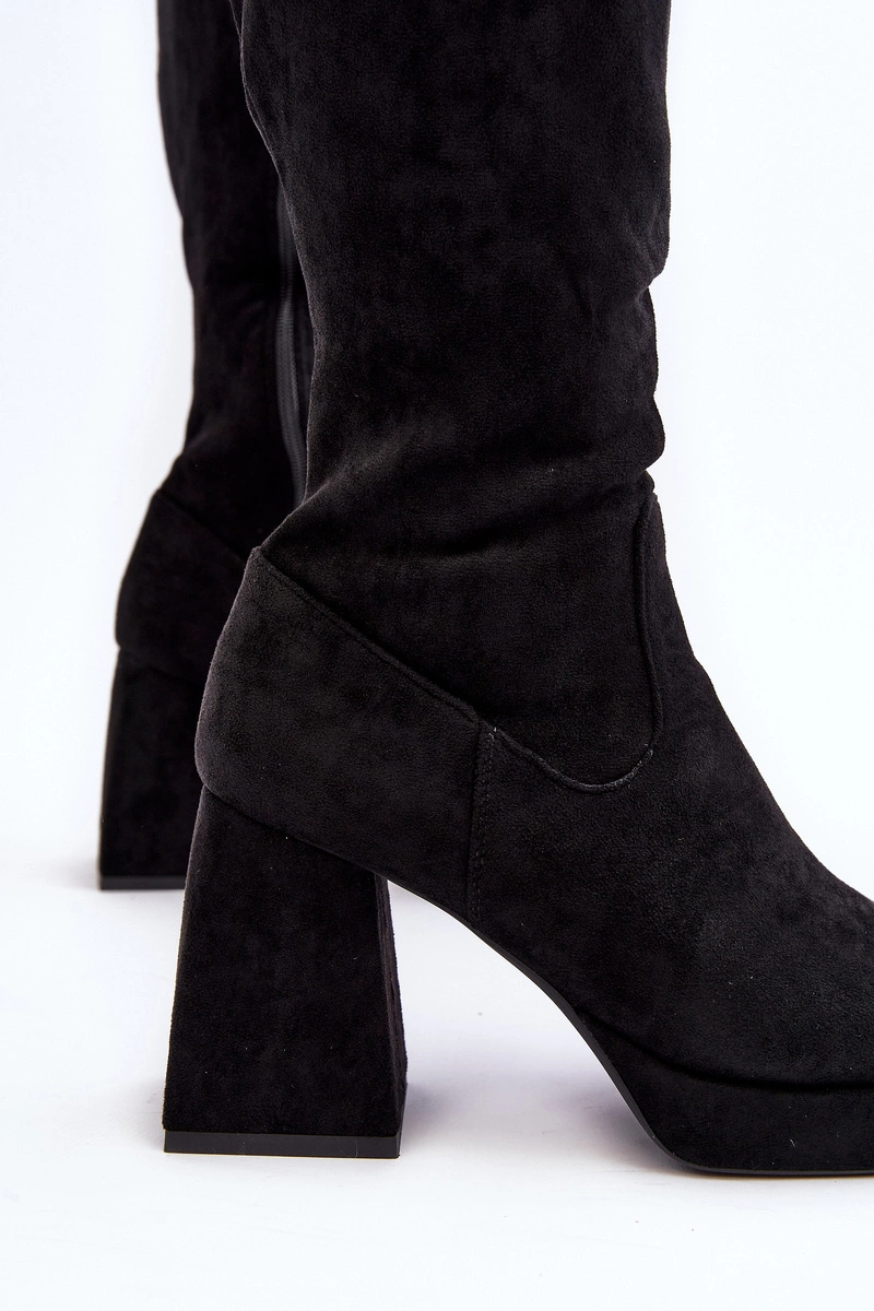 Kozaki Damskie Ocieplane Na Masywnym Obcasie Czarne Layala
