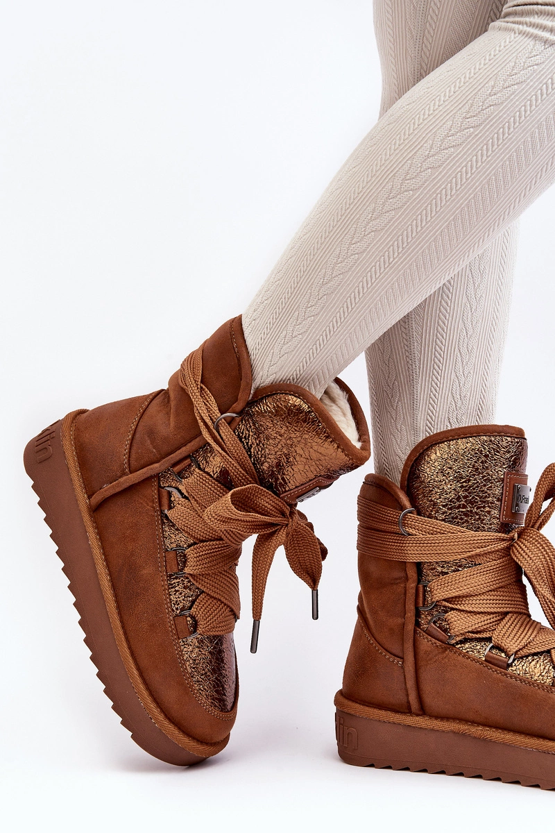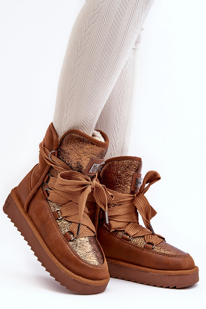 Damskie Śniegowce Z Wiązaniem D.Franklin DFSH370006 Brązowe