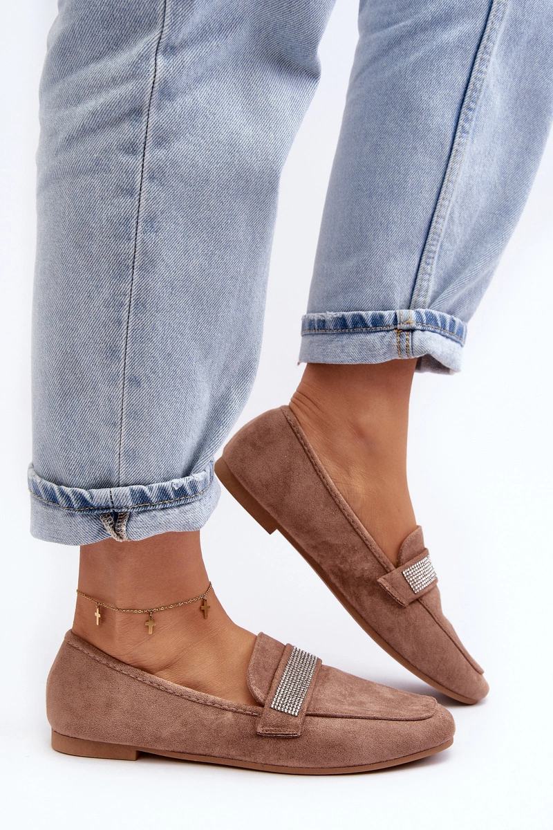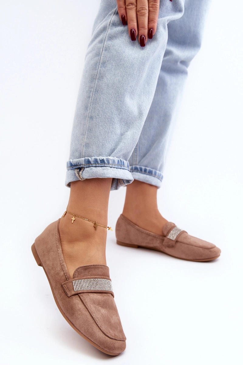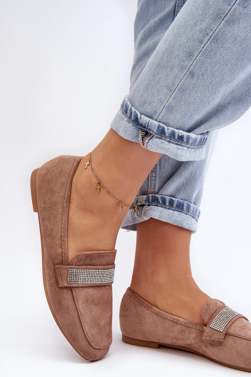 Damskie Mokasyny Z Cyrkoniami Jasnobrązowe Ralrika