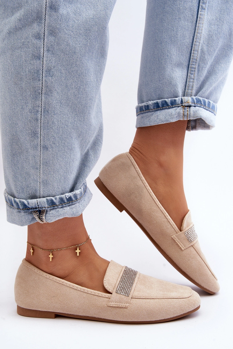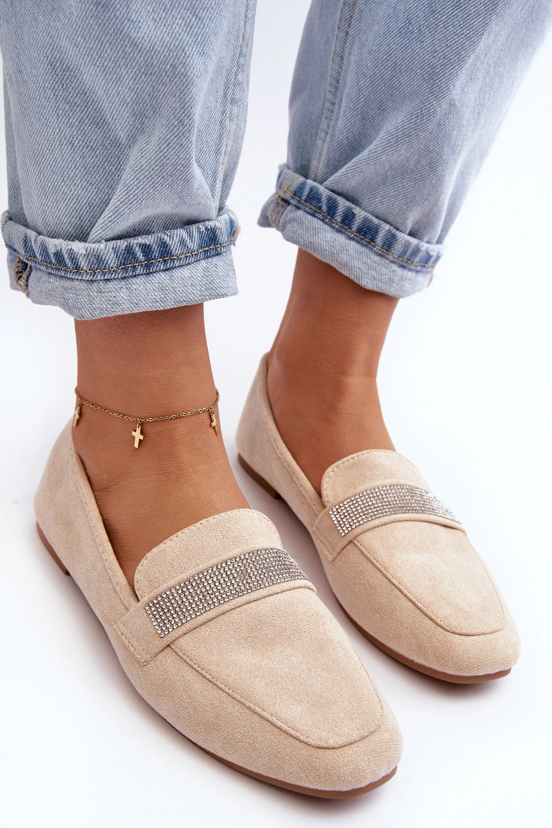 Damskie Mokasyny Z Cyrkoniami Beżowe Ralrika