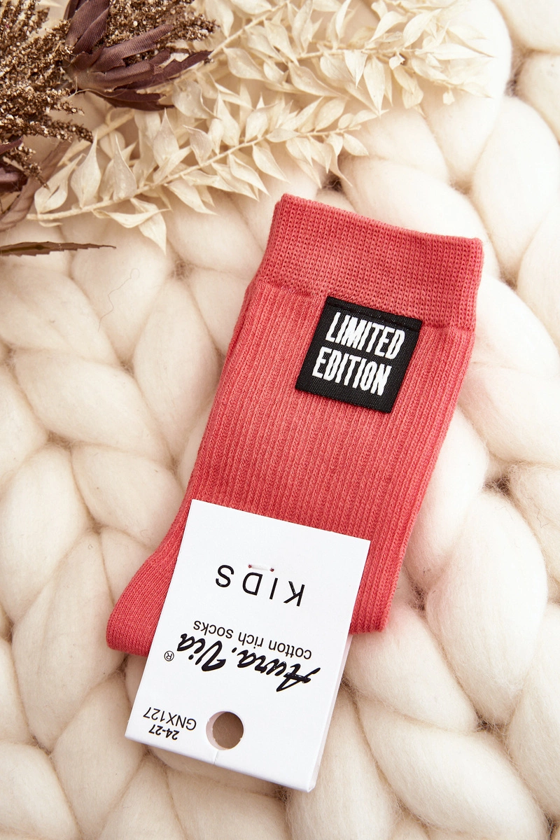 Dziecięce Gładkie Skarpetki Z Naszywką Różowe