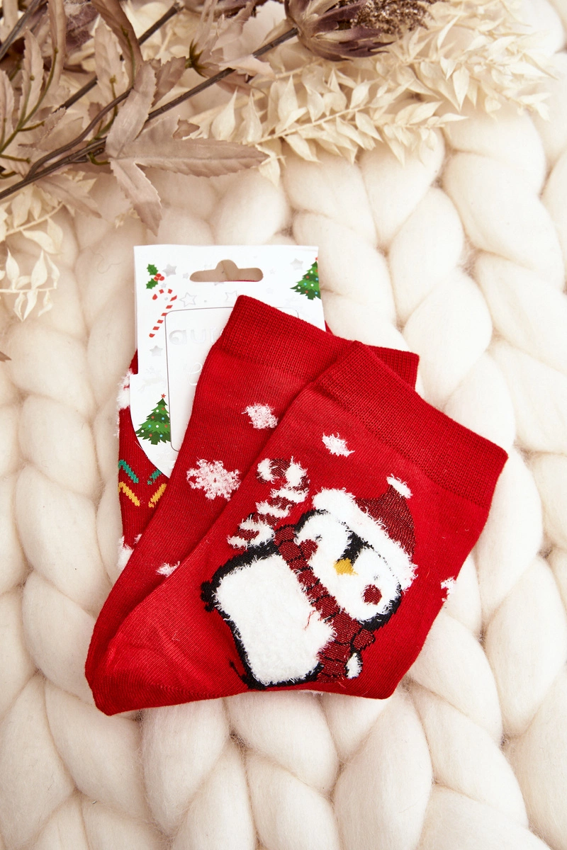 Damskie Skarpety Z Pingwinkiem Czerwone
