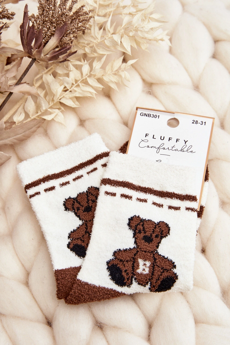 Młodzieżowe Ciepłe Skarpety Z Misiem Biało-Brązowe