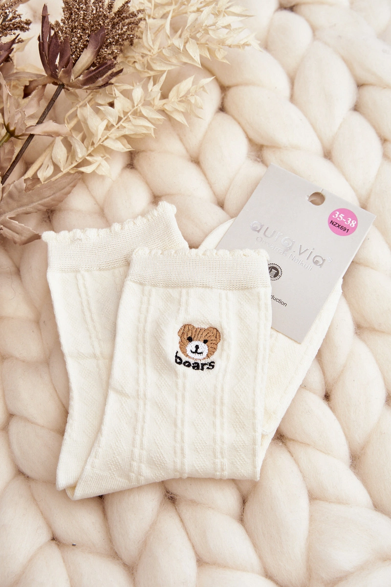 Wzorzyste Damskie Skarpety Z Misiem Białe - Wzór 2