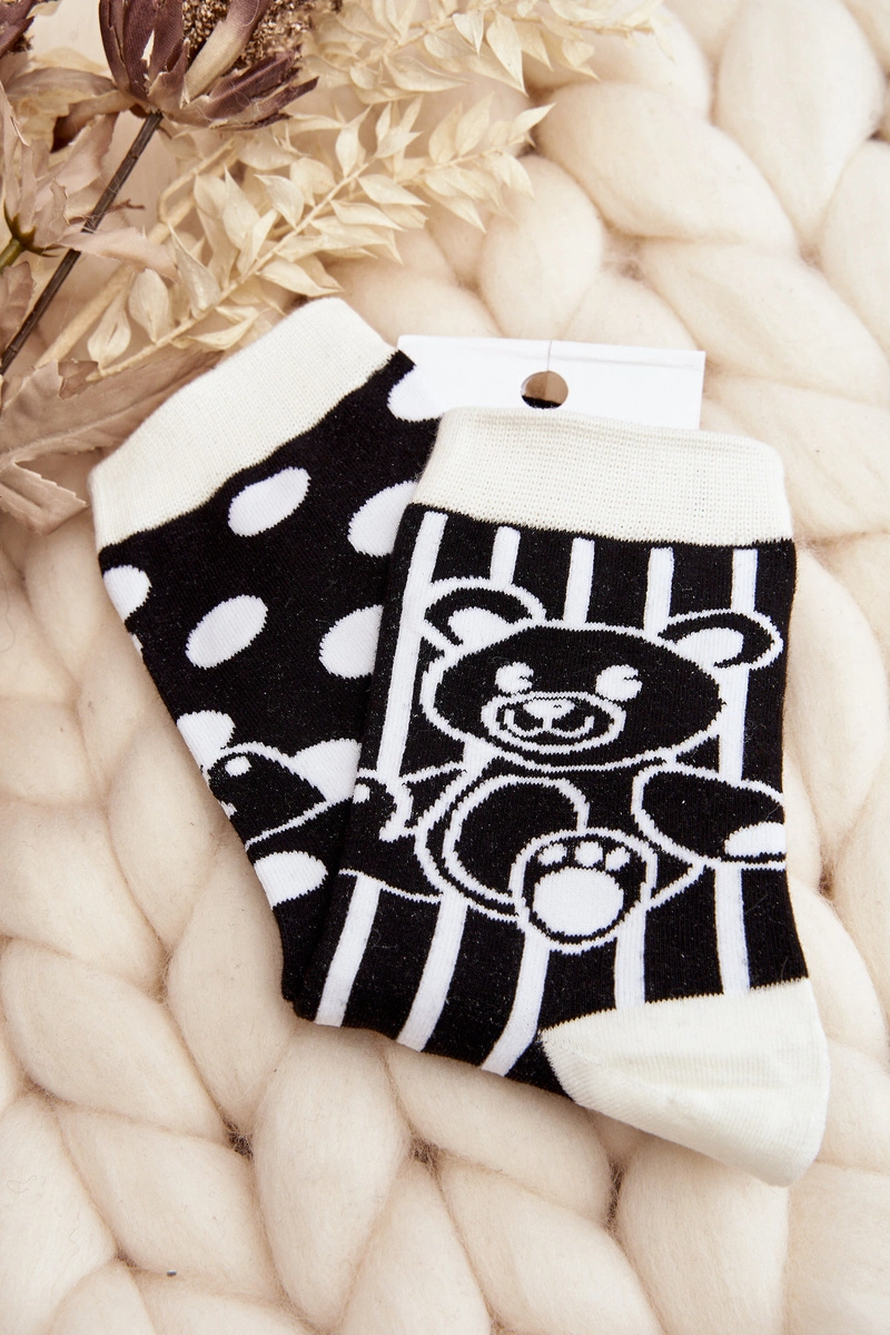 Skarpety Damskie Nie Do Pary Z Misiem Biało-Czarne