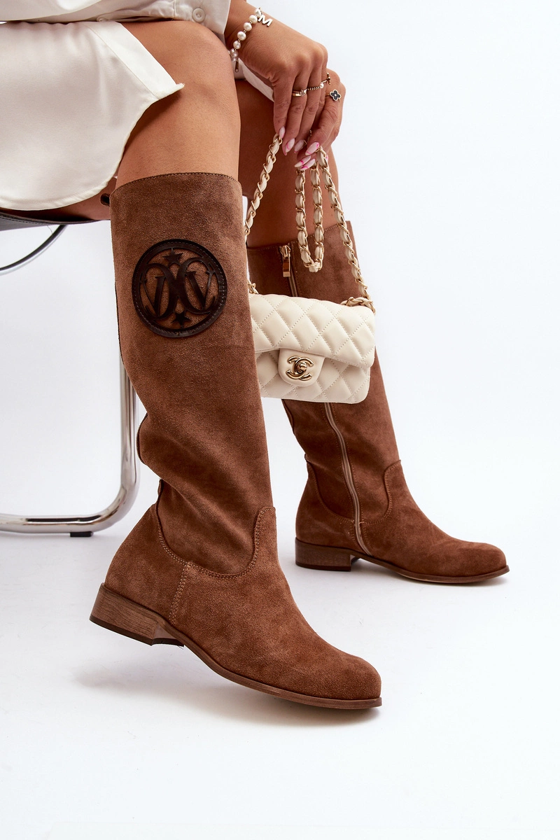Zazoo 3367 Zamszowe Kozaki Damskie Przed Kolano Brązowe