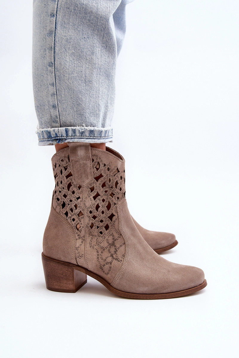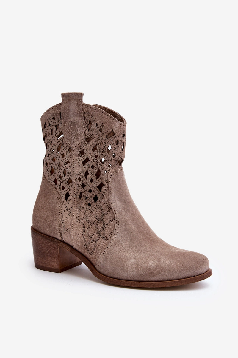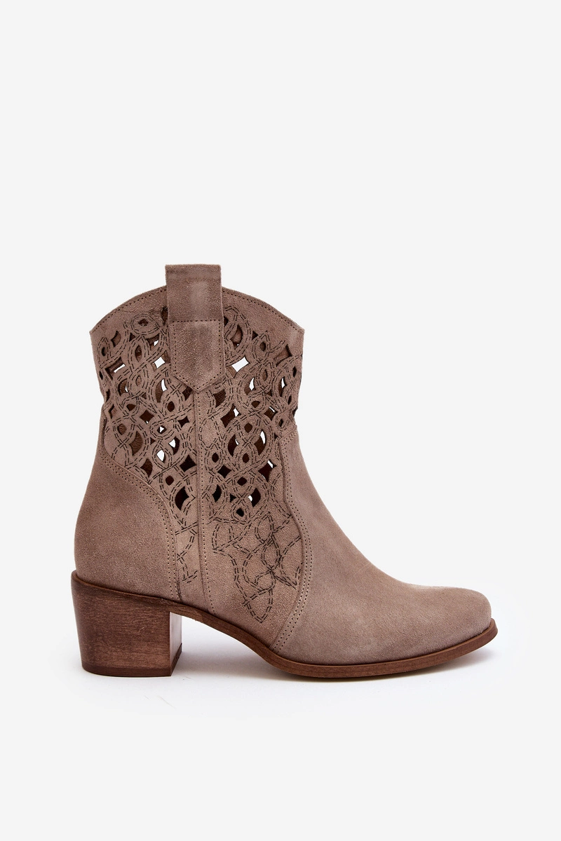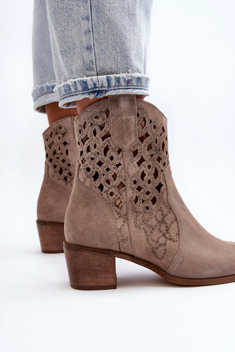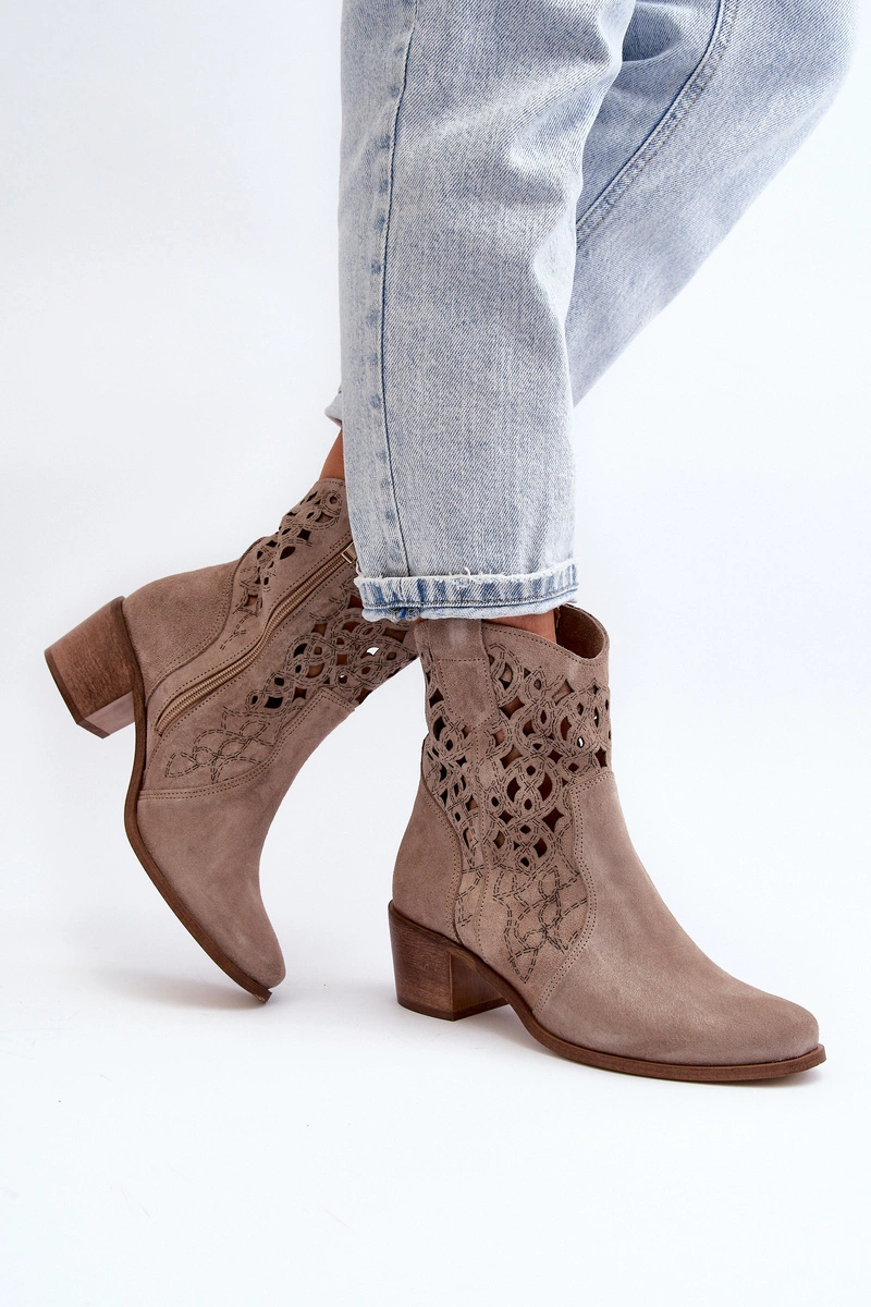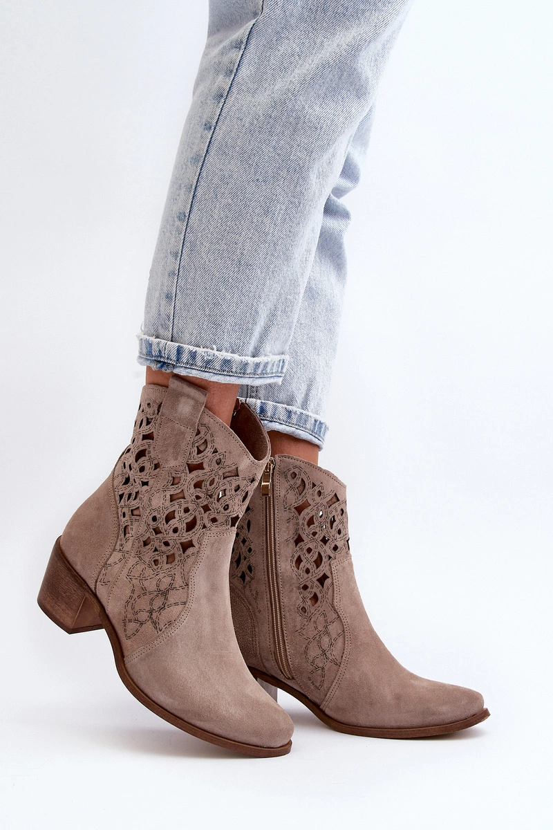 Zazoo 3394 Damskie Botki Na Obcasie Ażurowe Cappucino