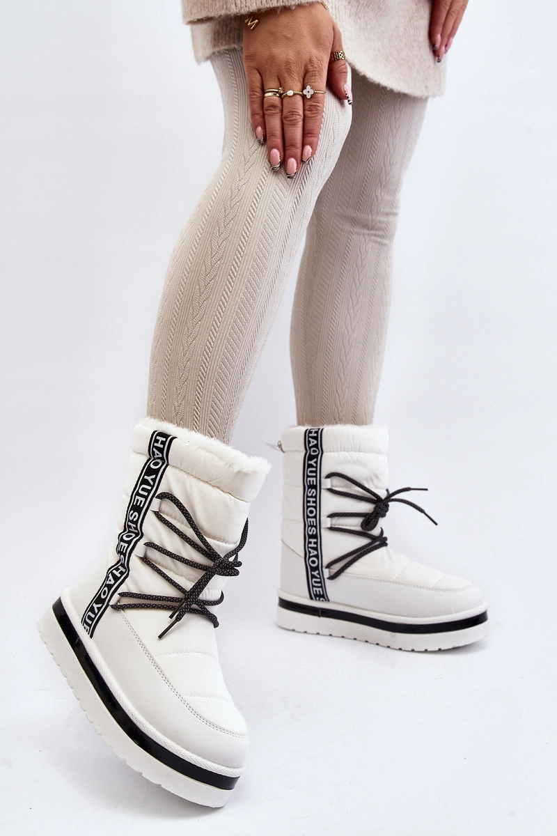 Modne śniegowce zostały wykonane z materiału odpornego na zimno i wiatr. Model wsuwany z dodatkowym wiązaniem. Gruba podeszwa ochroni przed zimnym podłożem. Ocieplone futerkiem w środku. Na górze cholewki ściągacz. Dekorowane tasiemką z nadrukiem. Niezwykle ciepłe, a zarazem stylowe. Powinnaś je mieć! Przy wyborze rozmiaru prosimy sugerować się tabelą rozmiarów.