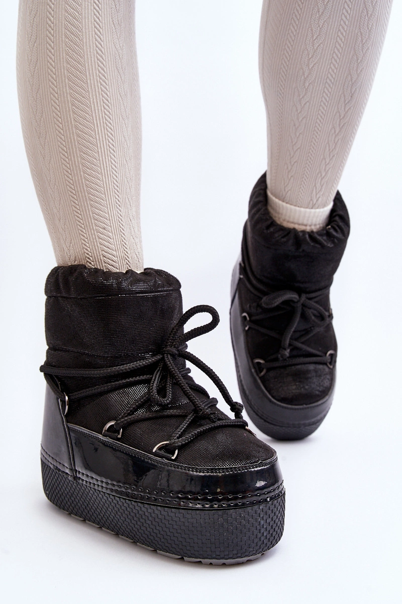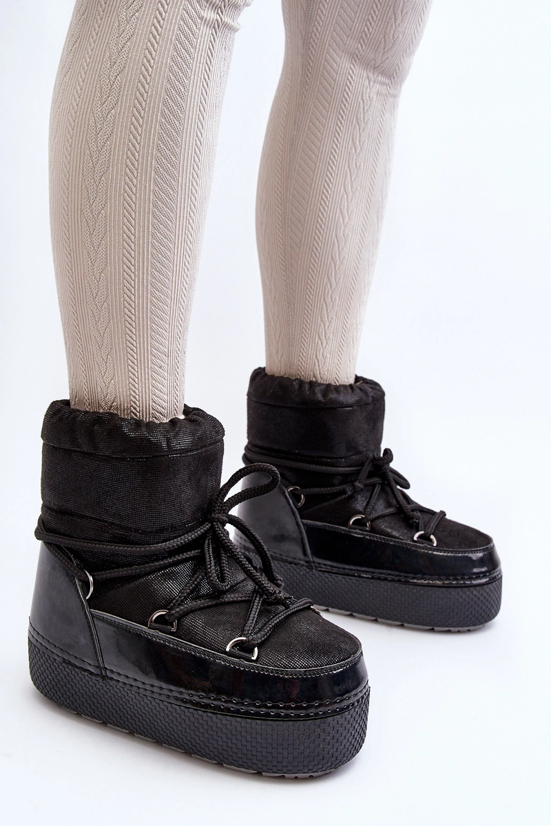 Damskie Śniegowce Z Wiązaniem Czarne Toolsa